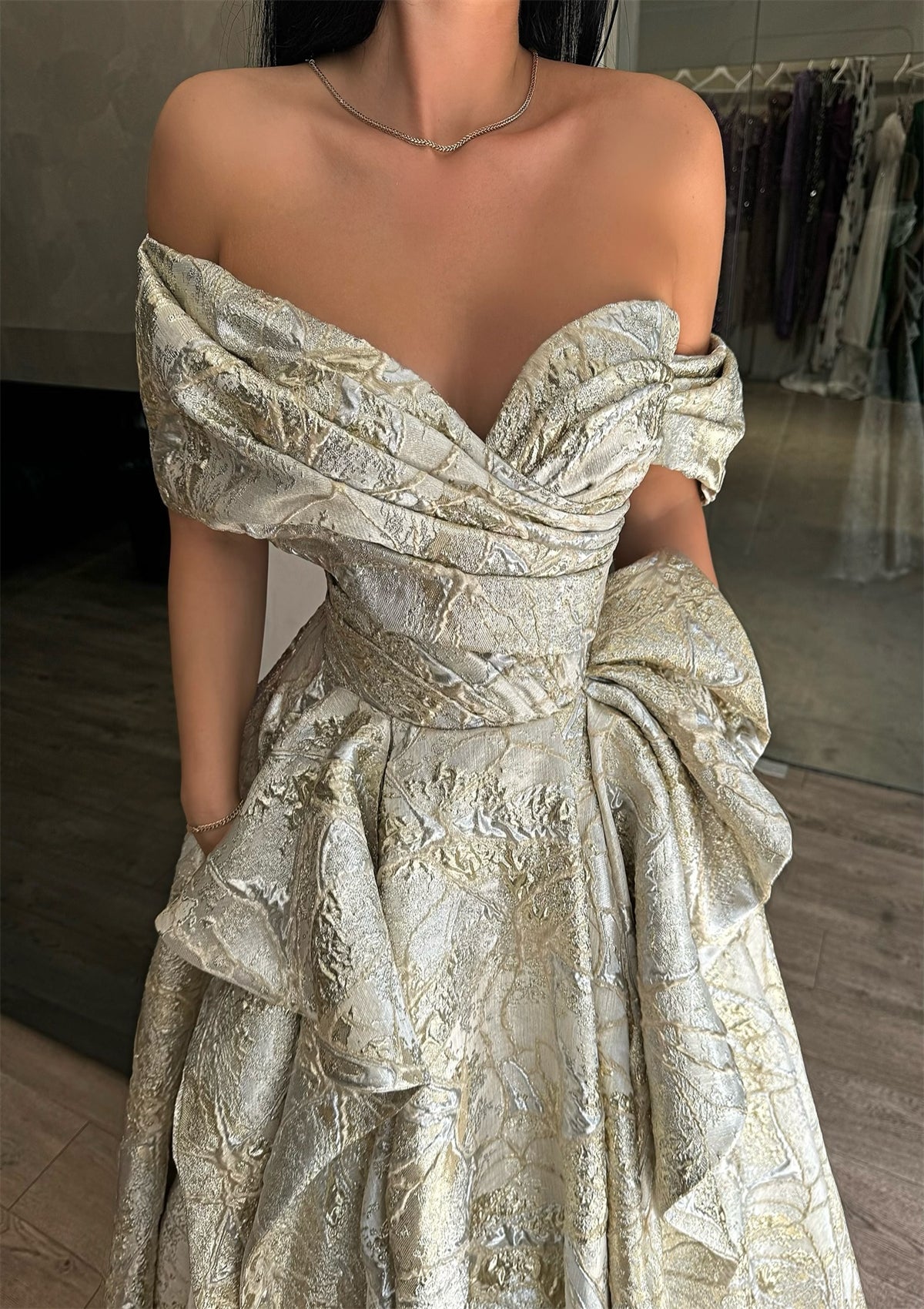Luxury Off-Shoulder Ruffled Satin Prom Dress with Bow