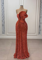 Mermaid 3D Floral Neck Orange Prom Dress with Slit