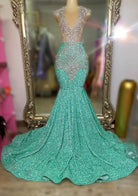 Mermaid Cap Sleeves Sequin Evening Dress with Rhinestone