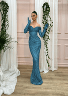 Mermaid Long Sleeves Sweetheart Illusion Evening Dress
