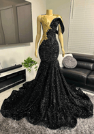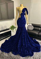 Mermaid One Draped Off Shoulder Sequin Appliques Evening Dress