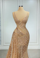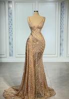 Mermaid Sleeveless Cutout Waist Beading Prom Dress