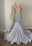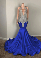 Mermaid Sleeveless Sequin Appliques Satin Evening Dress