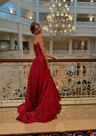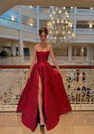 Opulent Sequin Brocade High-Slit Strapless Prom Dress
