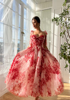 Pink Printed Spaghetti Strap Corset Prom Dress