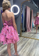 Romantic Sleeveless Floral Corset Tulle Prom Dress