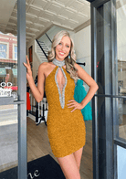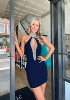 Sex Halter Cut Out Sequin Tight Homecoming Dress