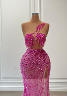 Sweet One Spaghetti Strap Pink Beadings Prom Dress