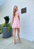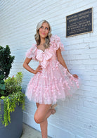 Sweet Puffy Sleeves 3D Floral Tulle Prom Dress with Bow