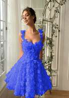 Sweet Spaghetti Strap 3D Flowers Prom Dress with Pearls