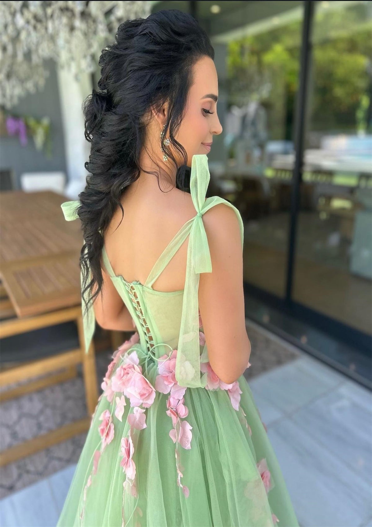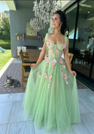 Sweet Straps Sleeveless 3D Appliques Prom Dress