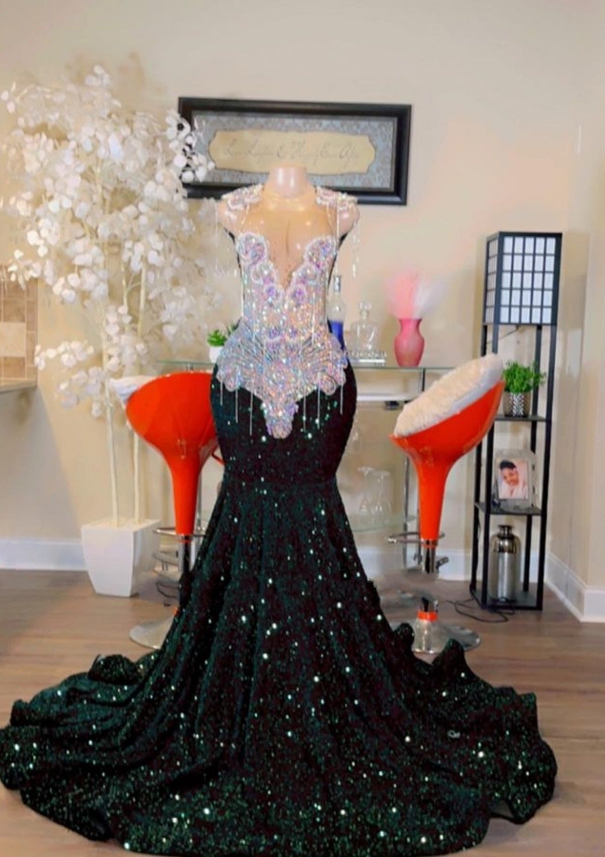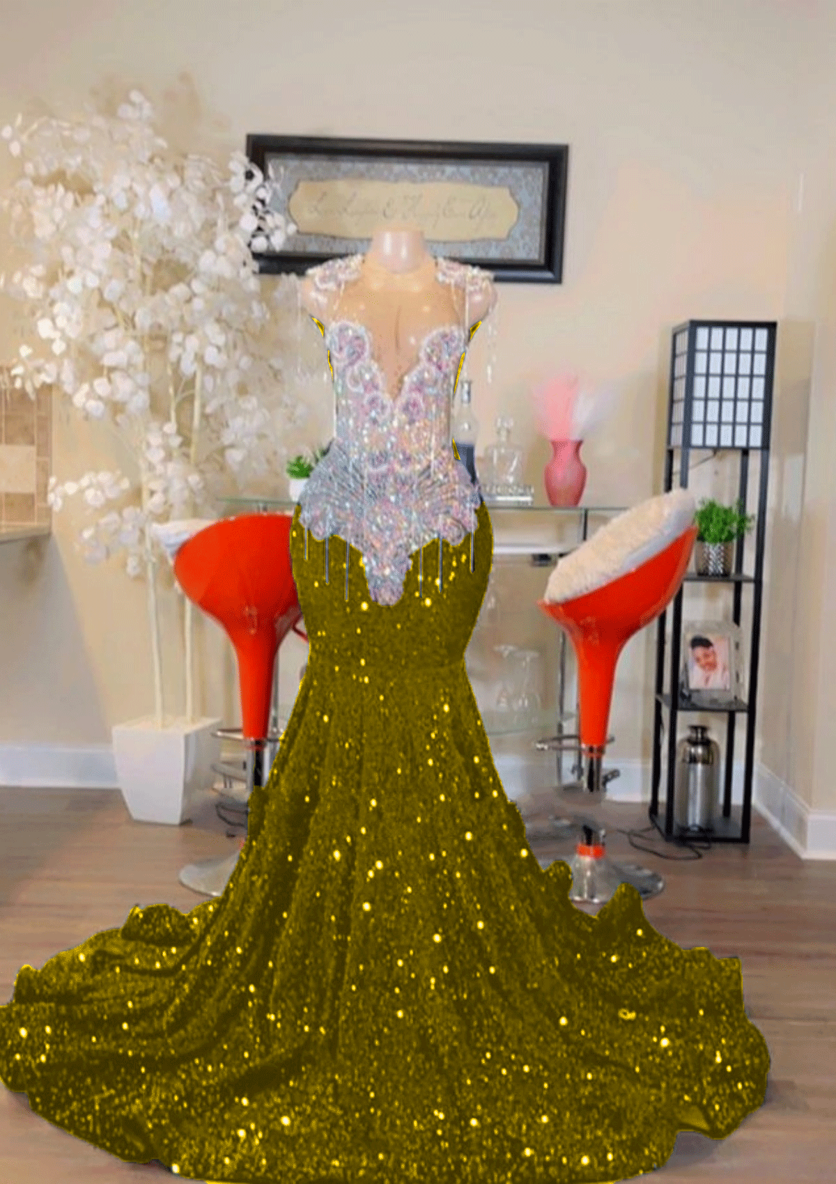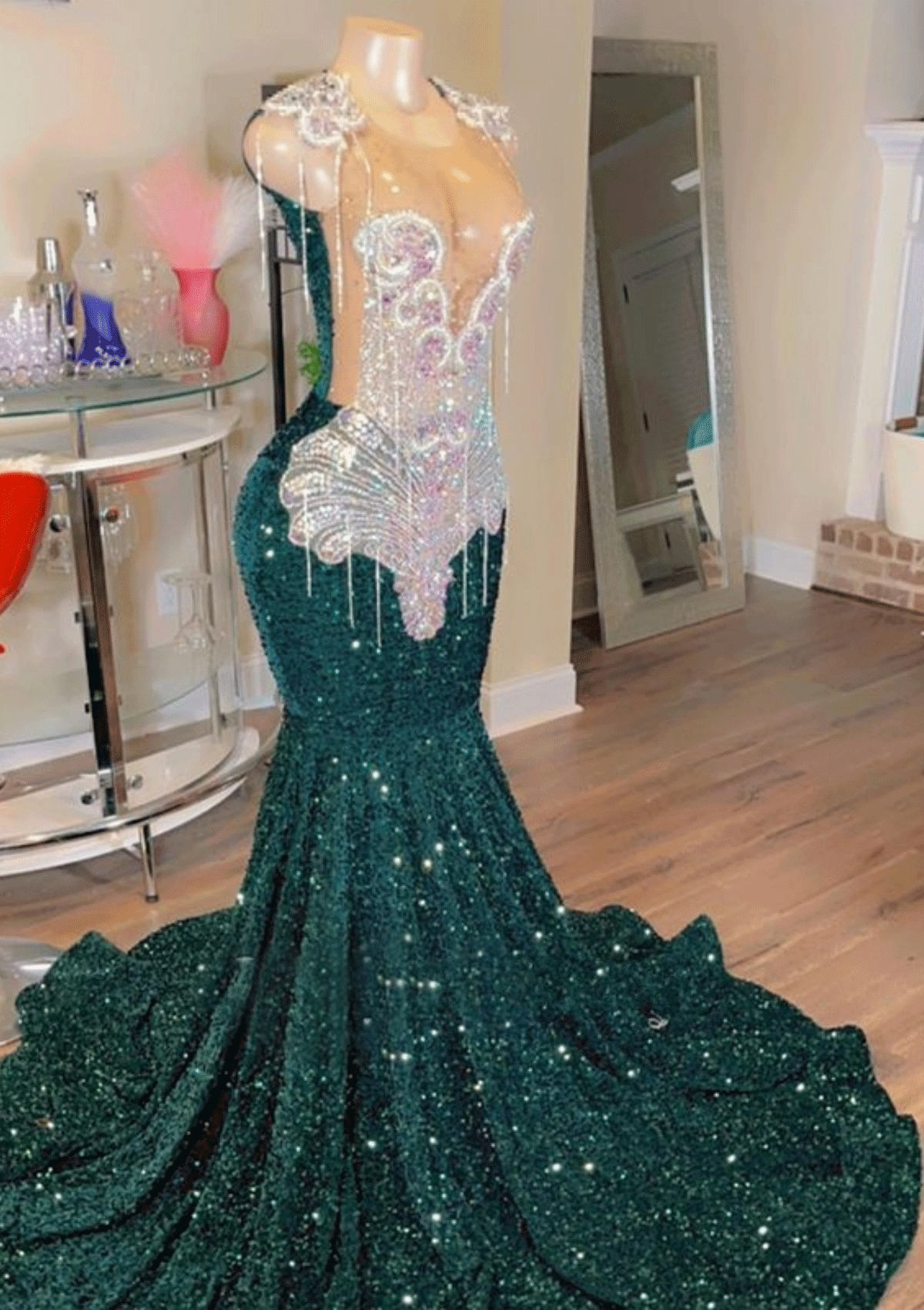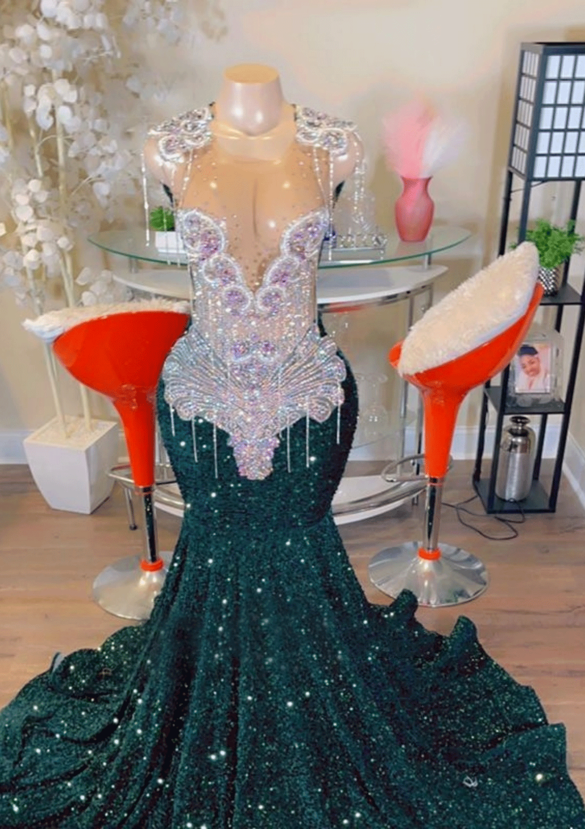 Luxury Sequined Mermaid Prom Dress with Rhinestone Perspective Cutout