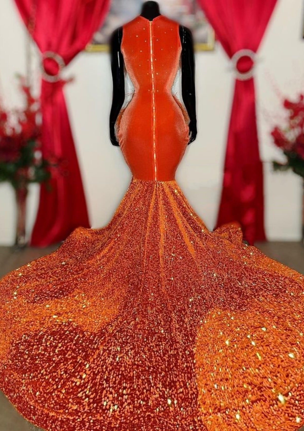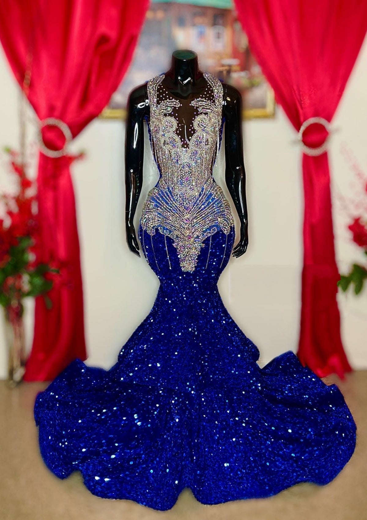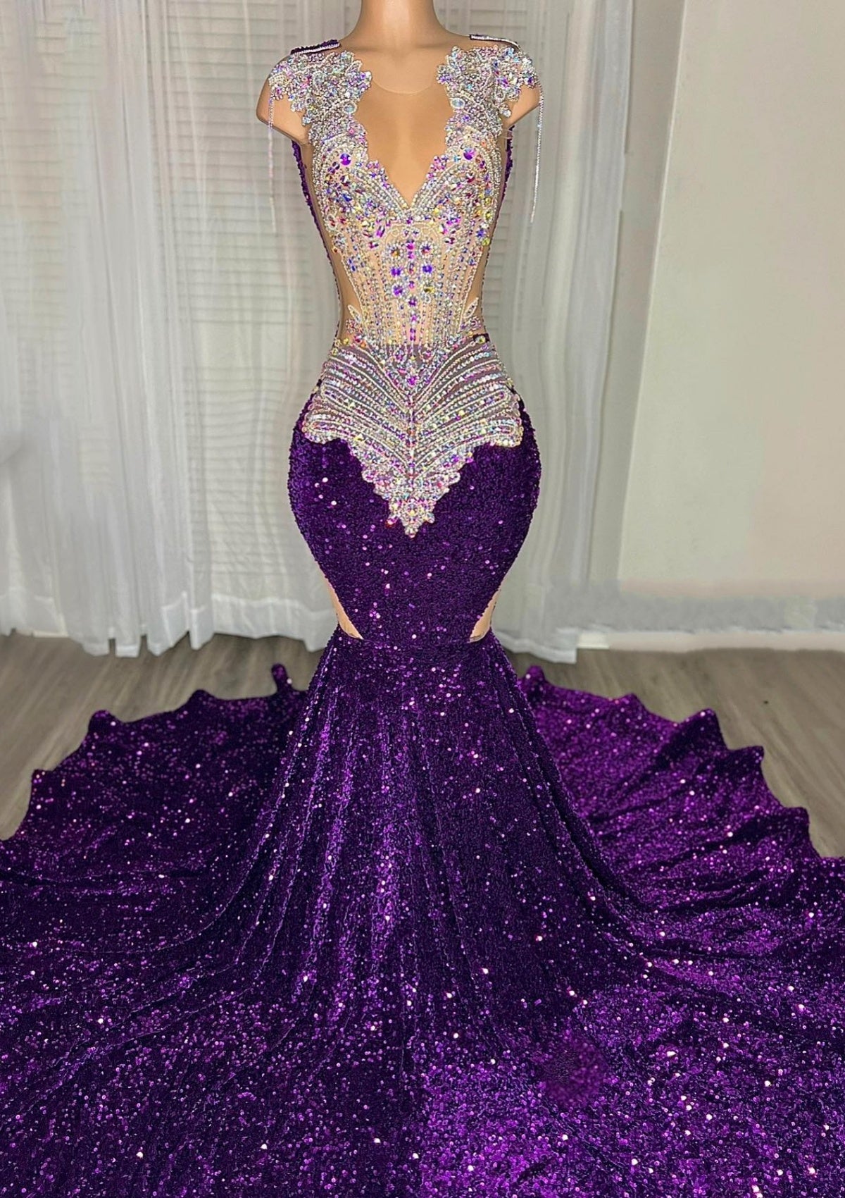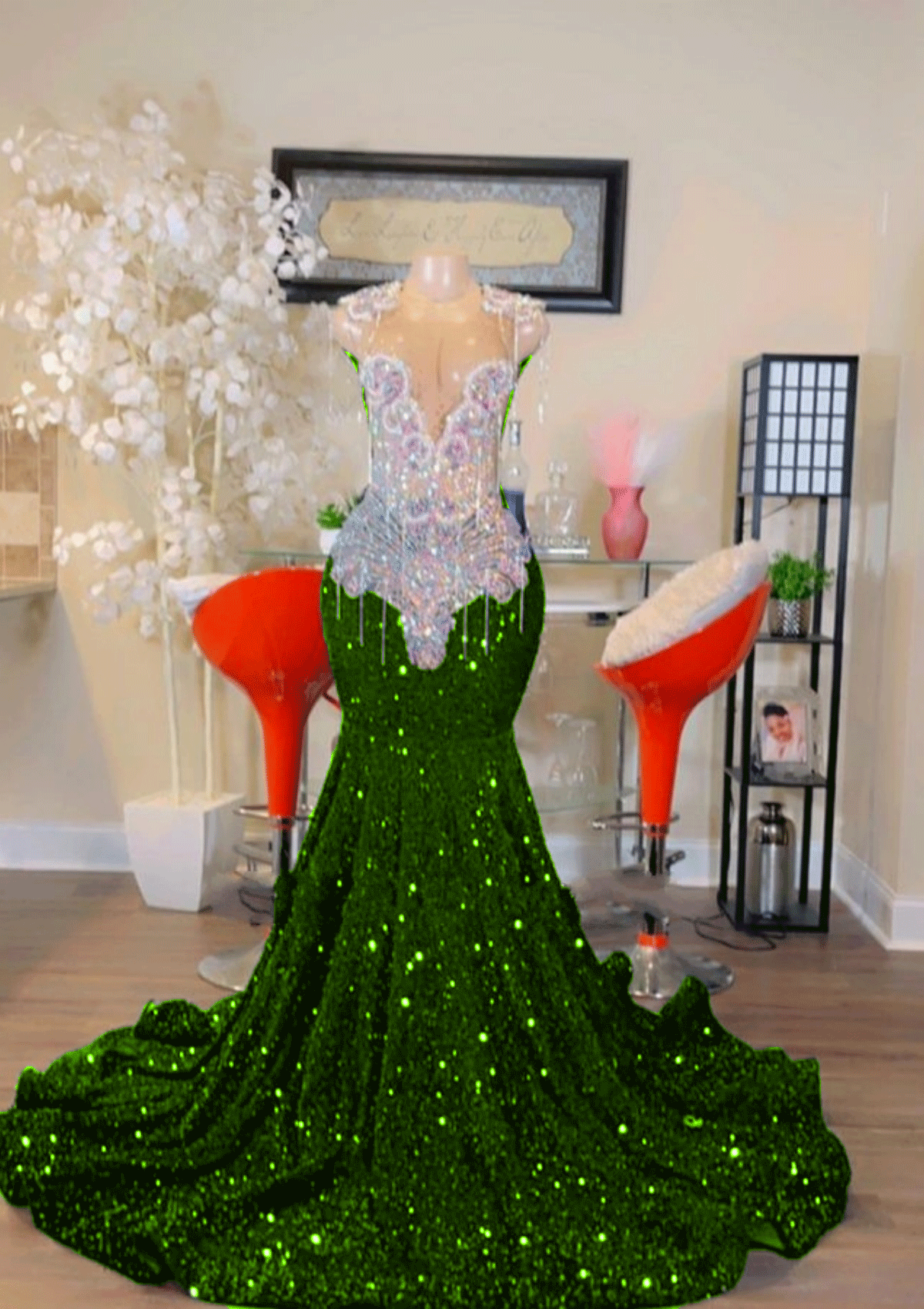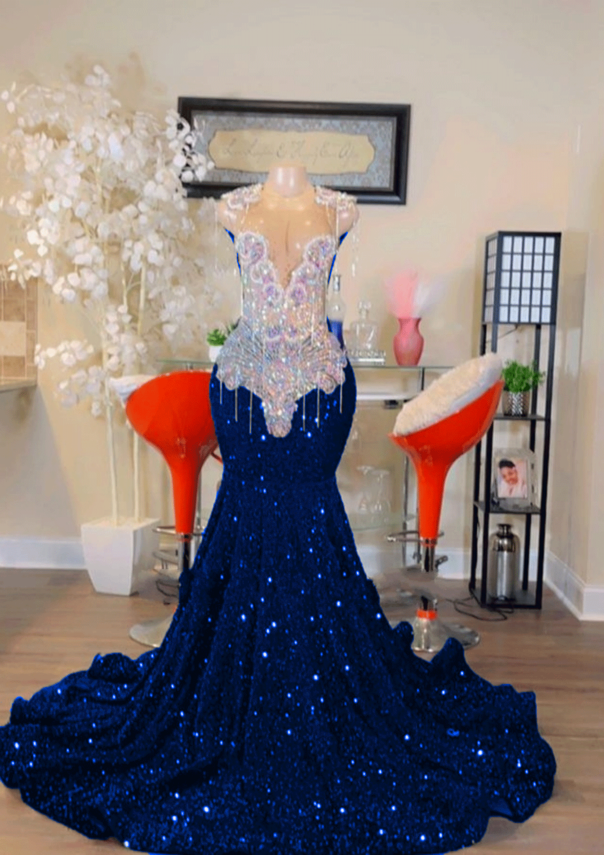 Luxury Sequined Mermaid Prom Dress with Rhinestone Perspective Cutout