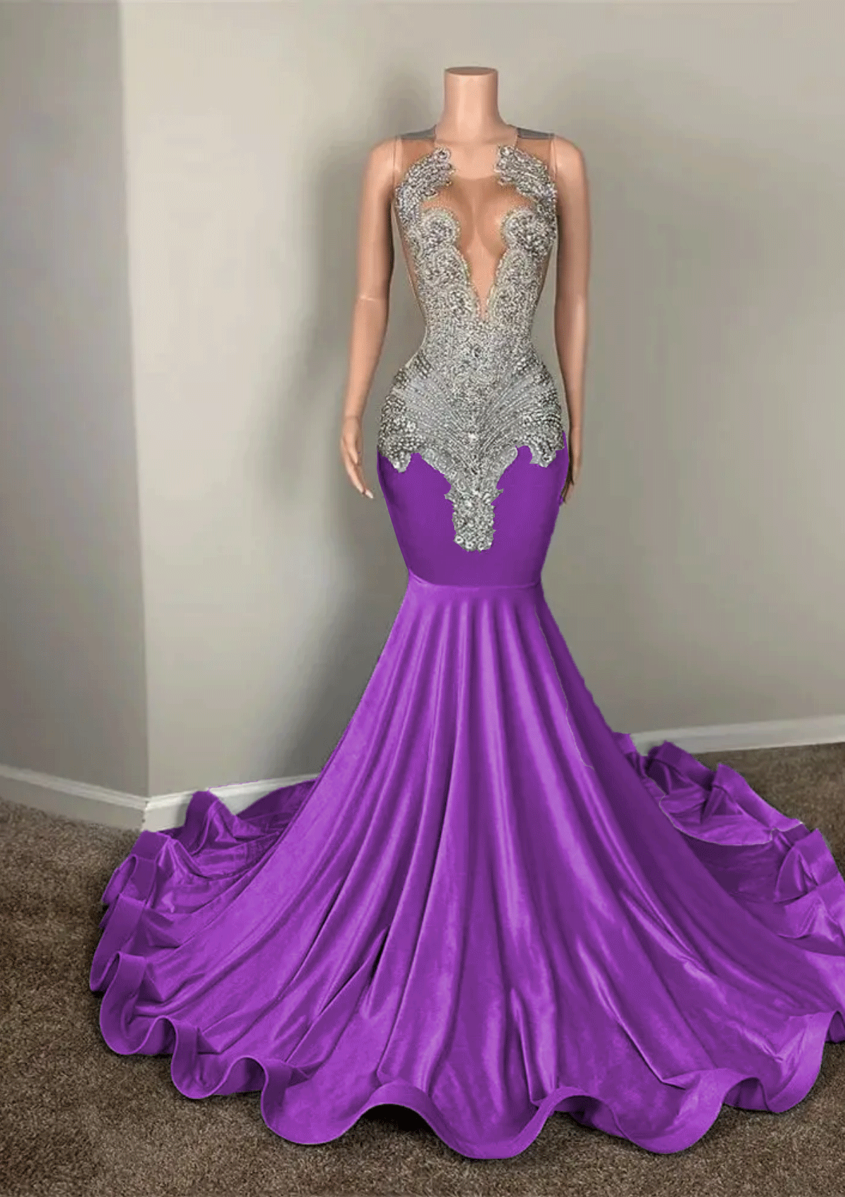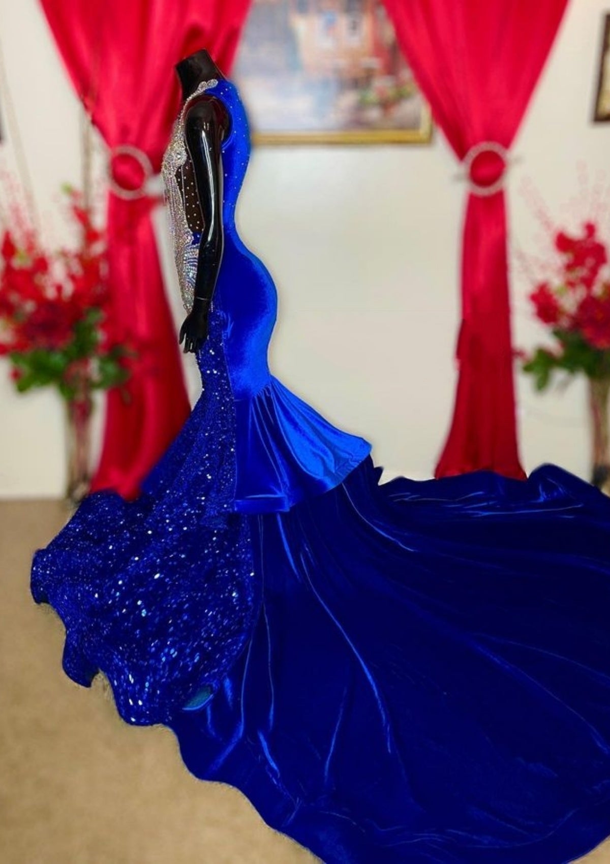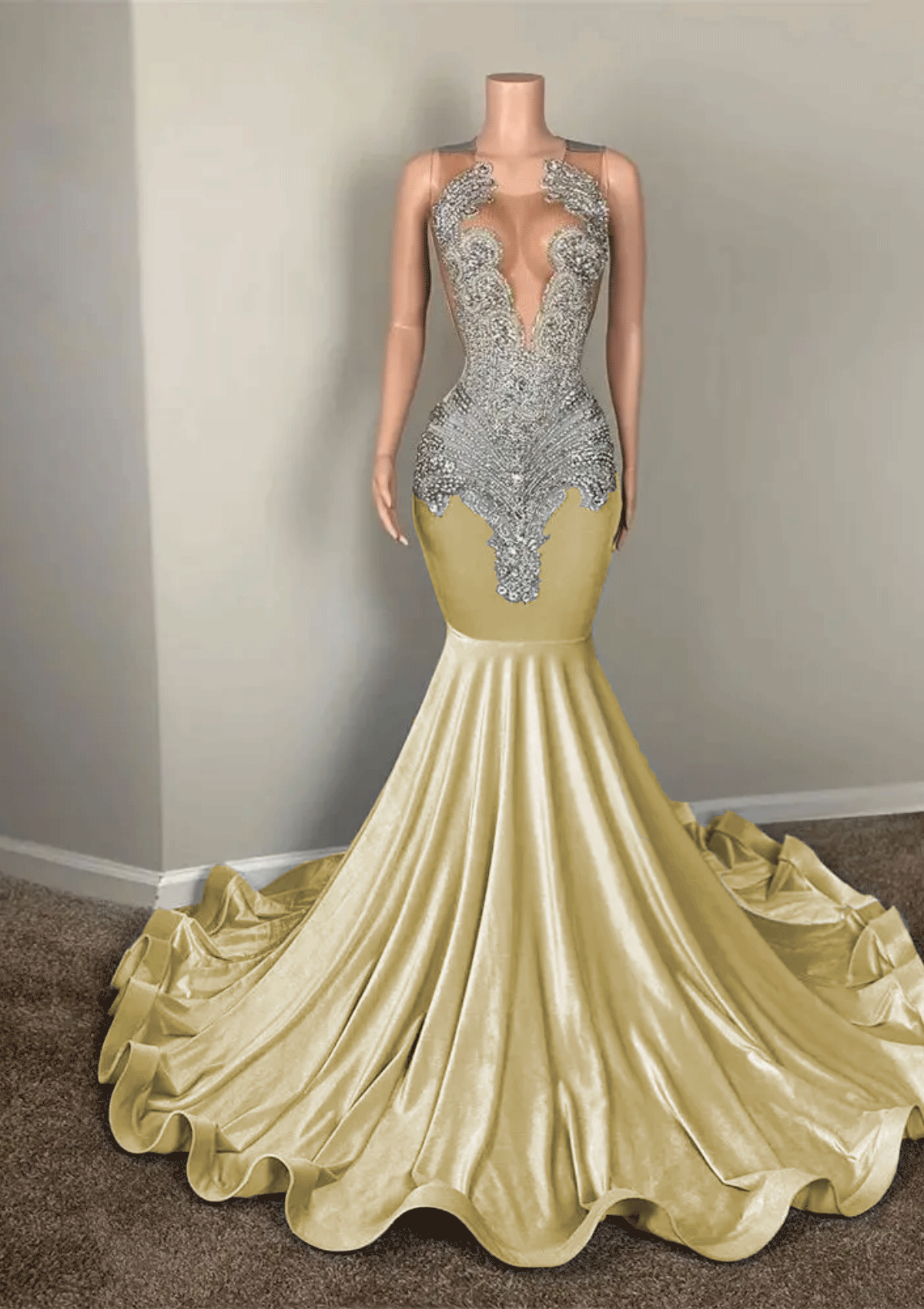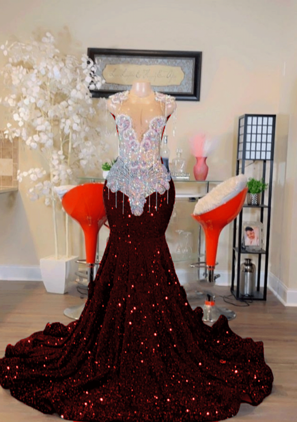 Luxury Sequined Mermaid Prom Dress with Rhinestone Perspective Cutout