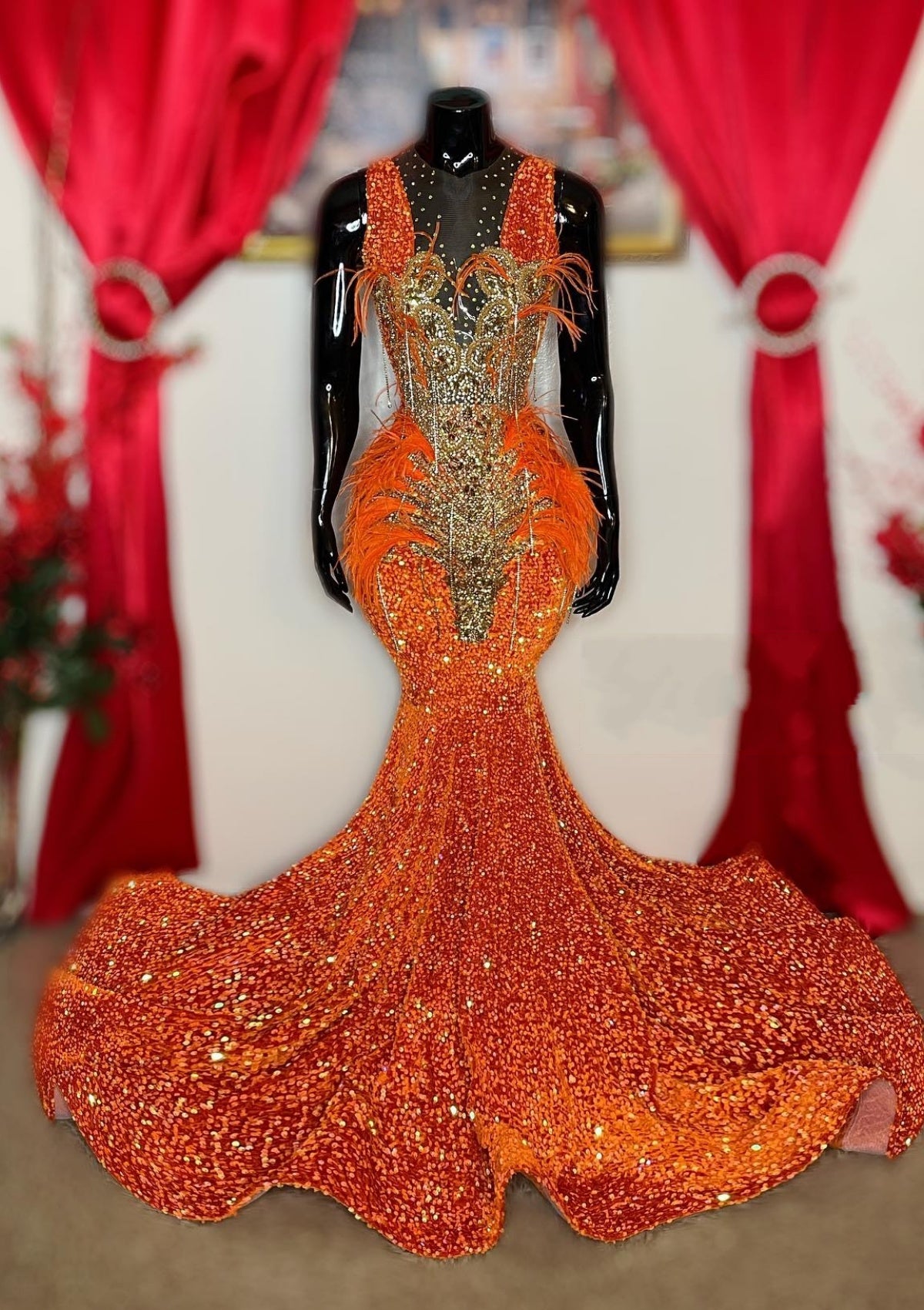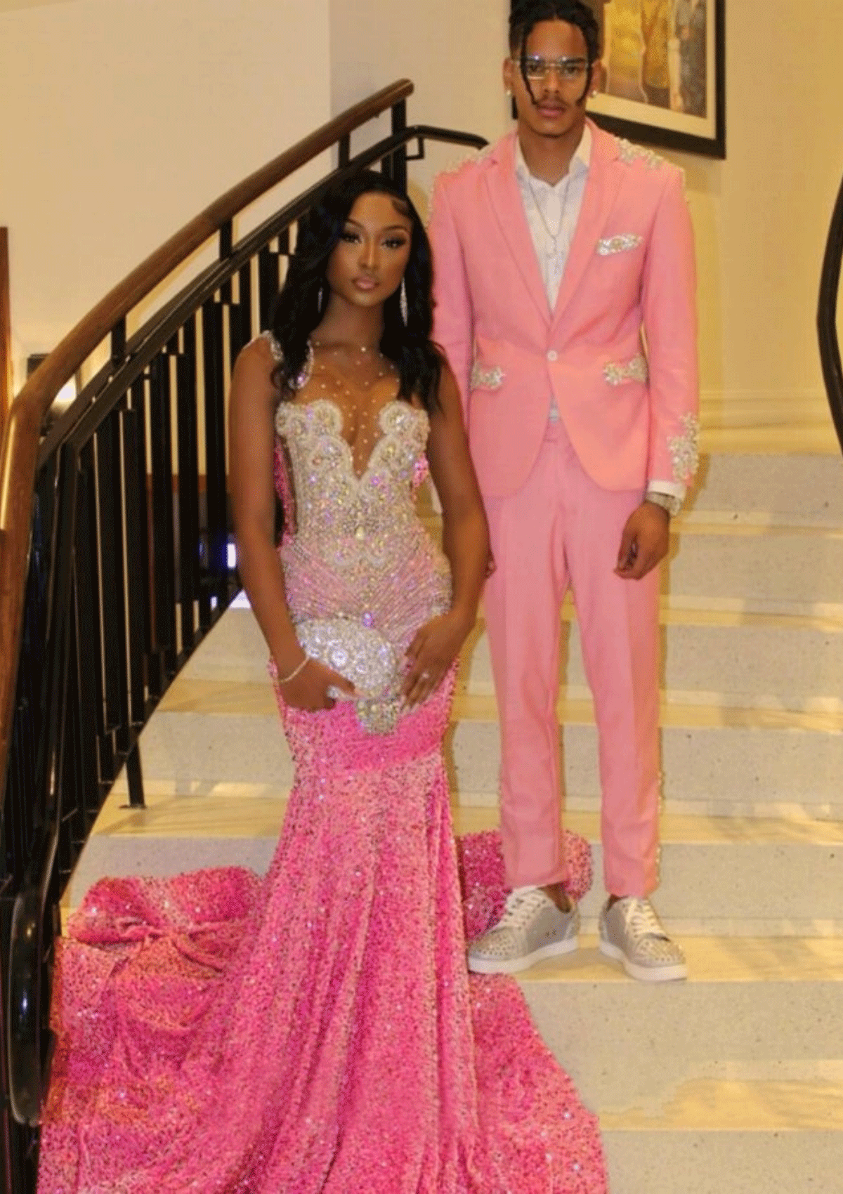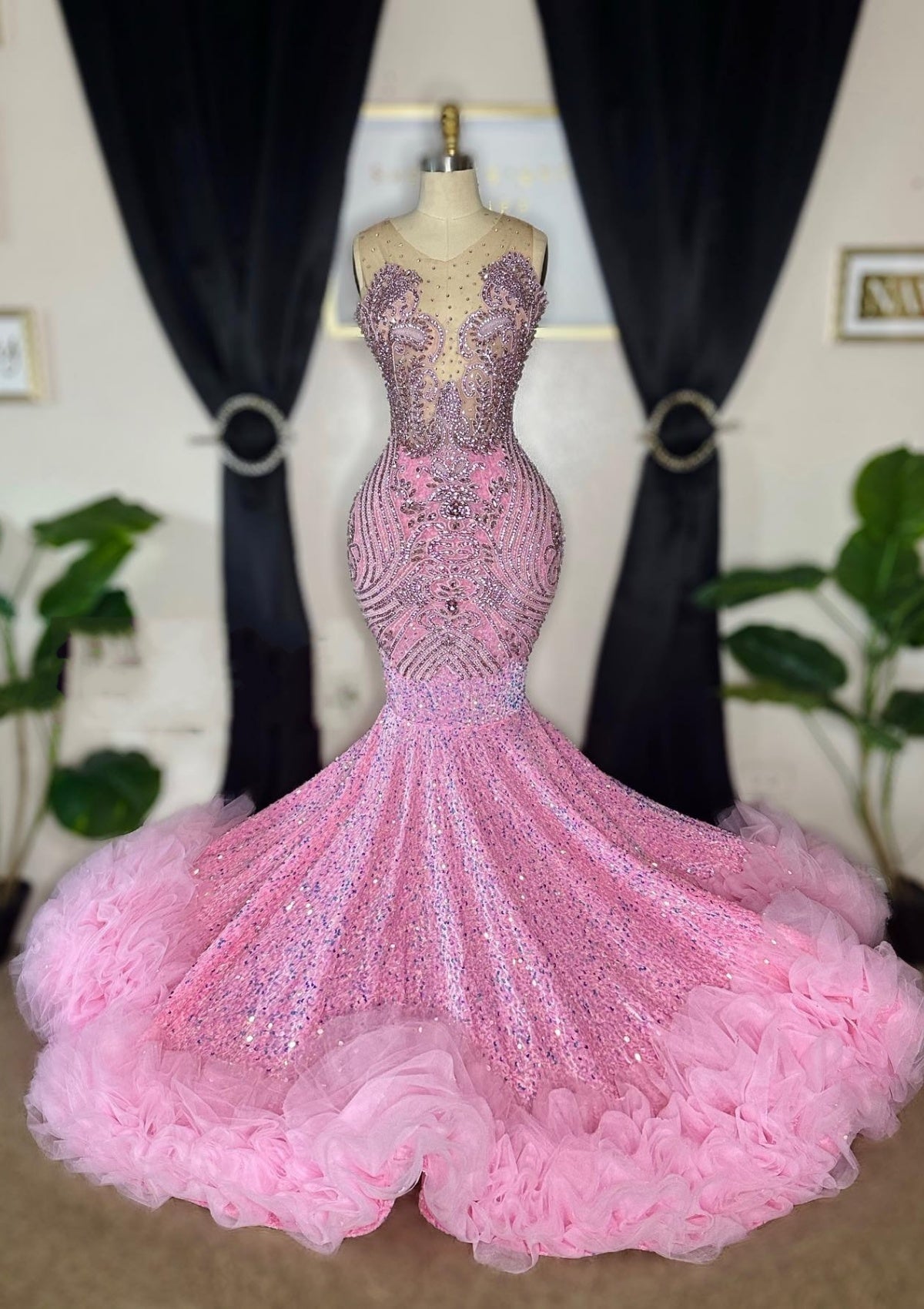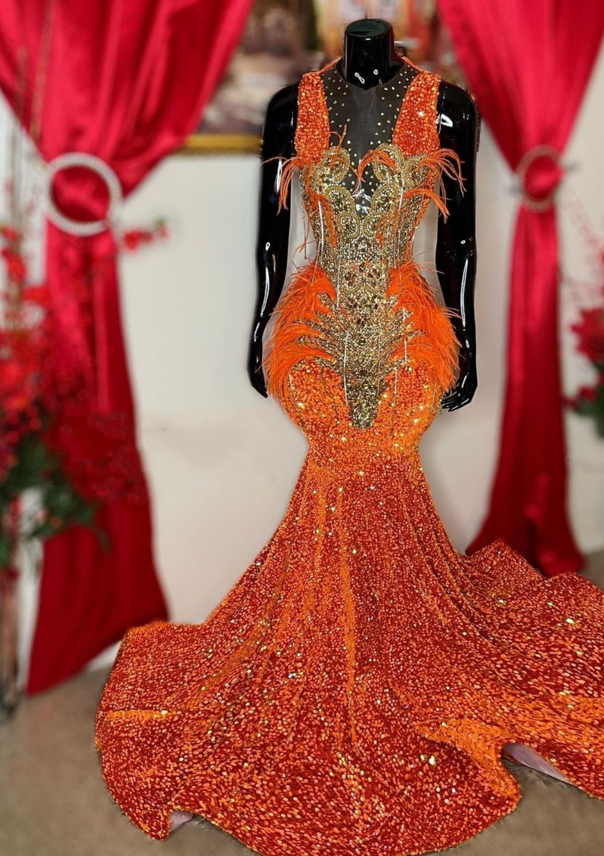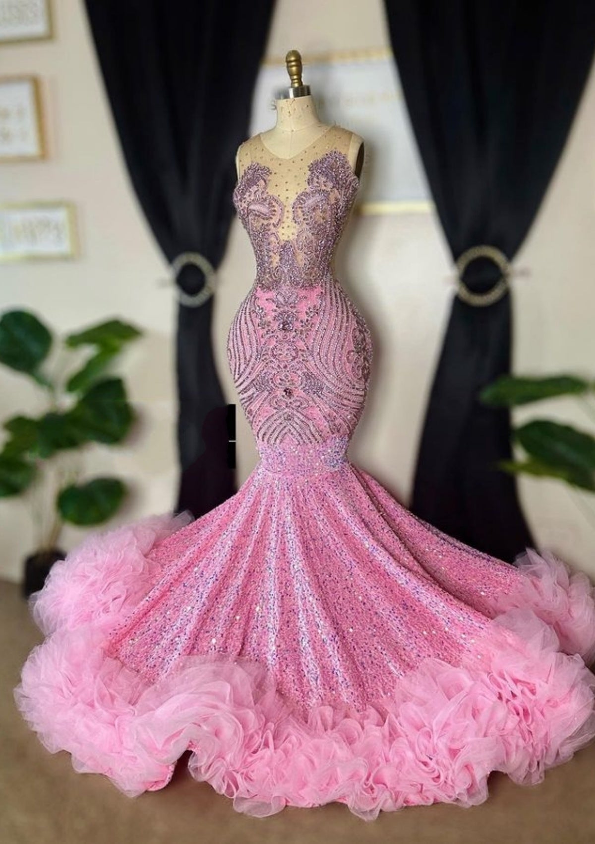 Luxury Sequined Mermaid Prom Dress with Rhinestone Perspective Cutout