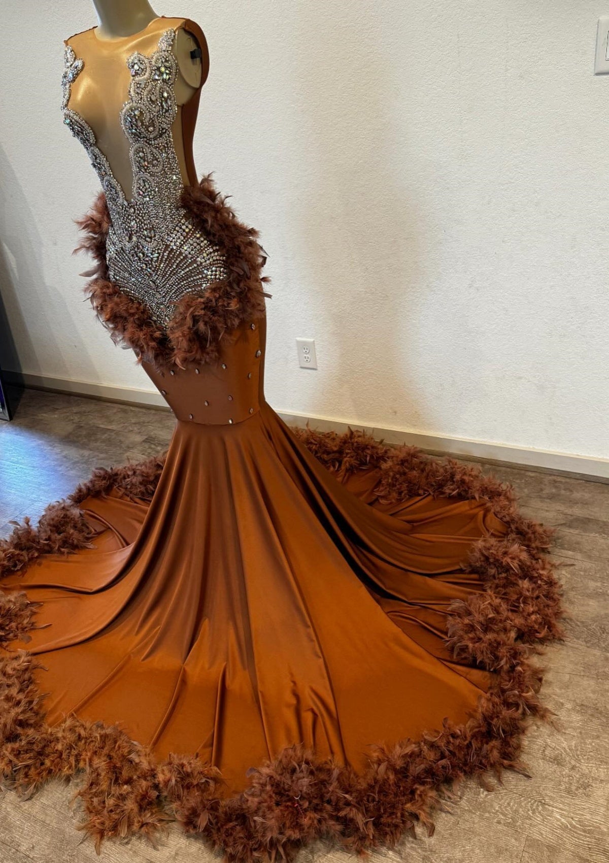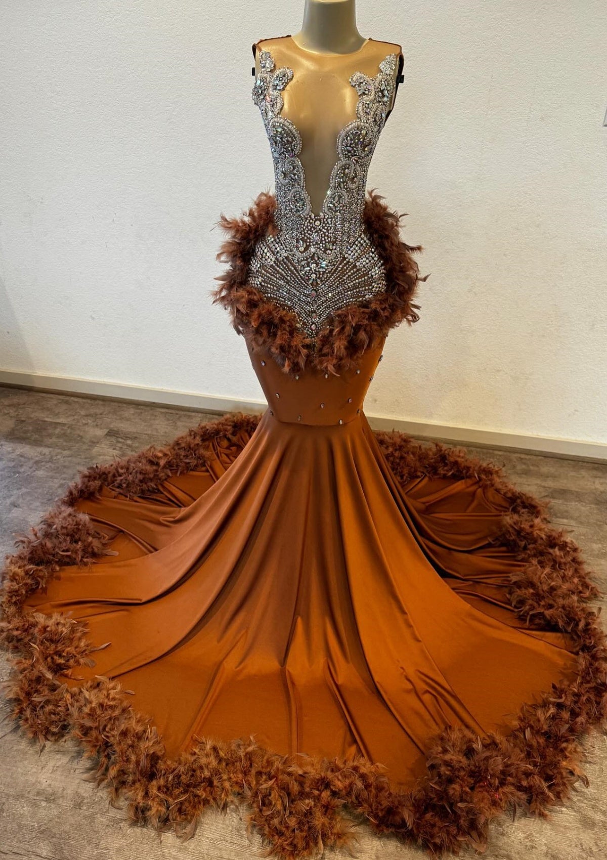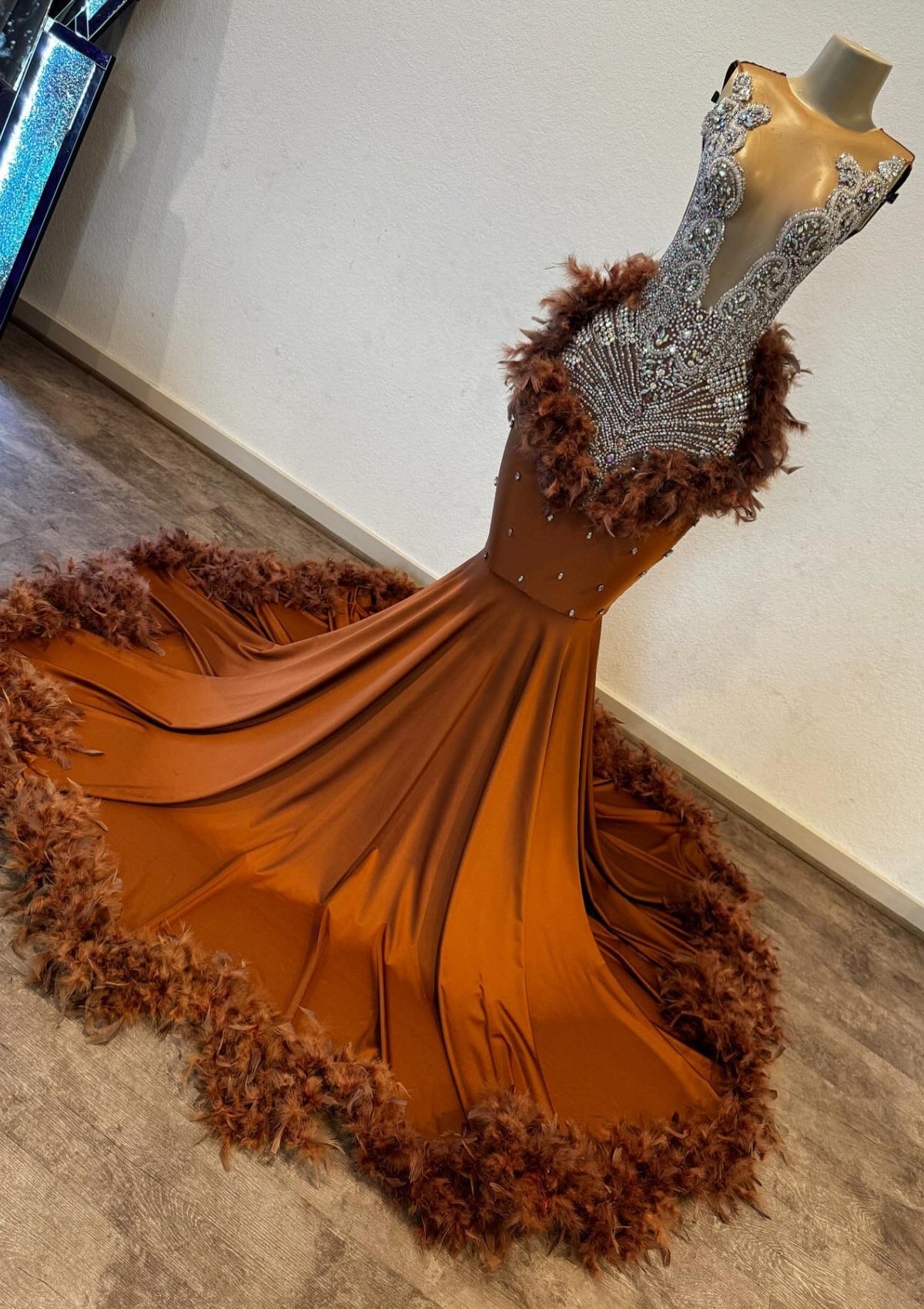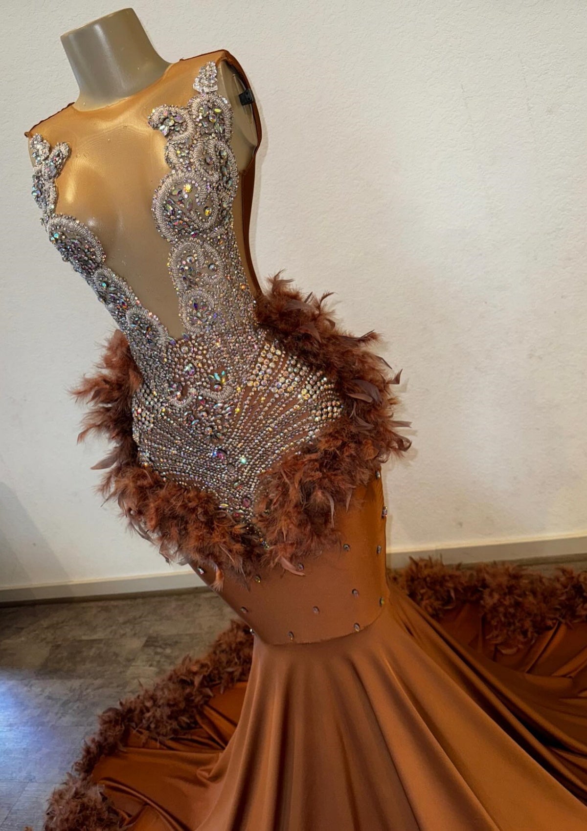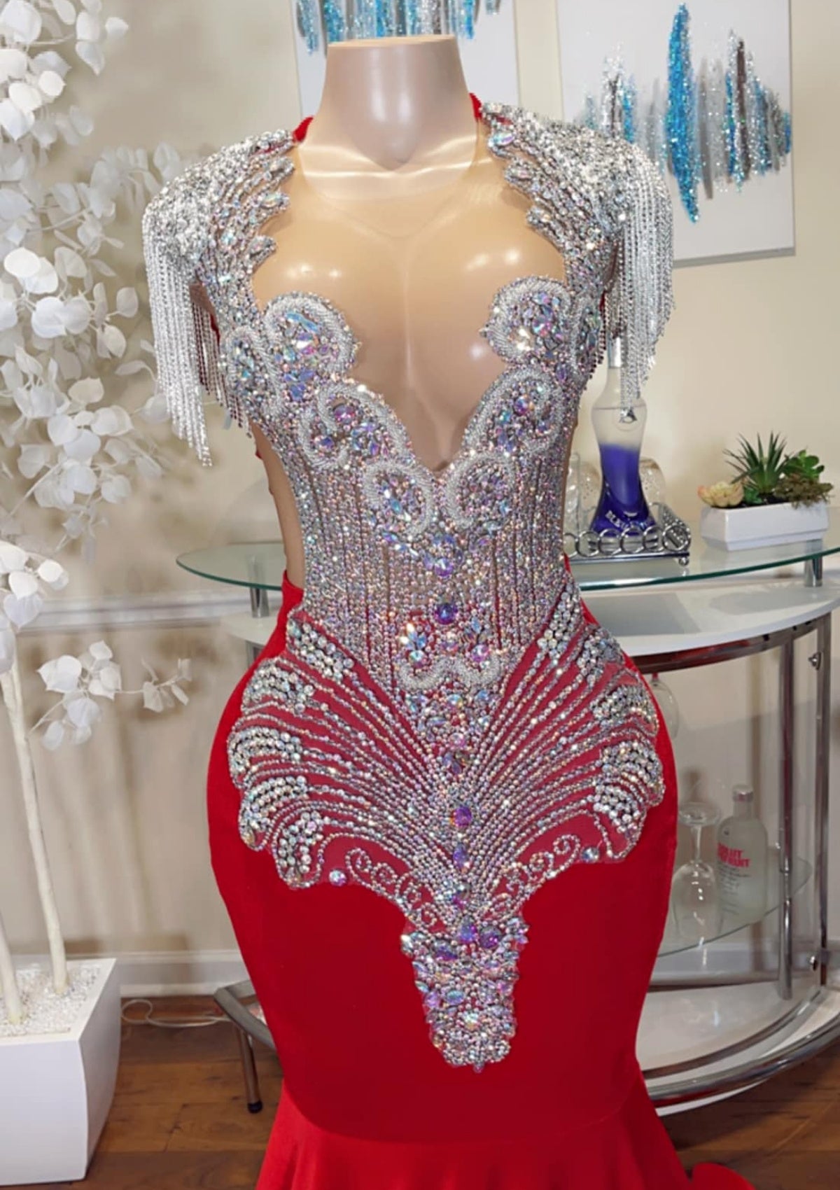 Glamorous Sequined Heavy Rhinestone Prom Dress with Sparkling Long Train