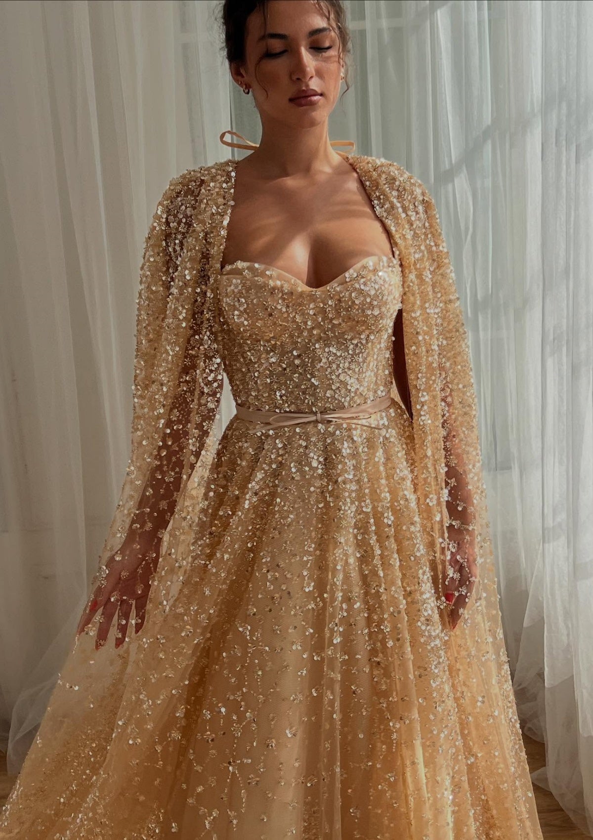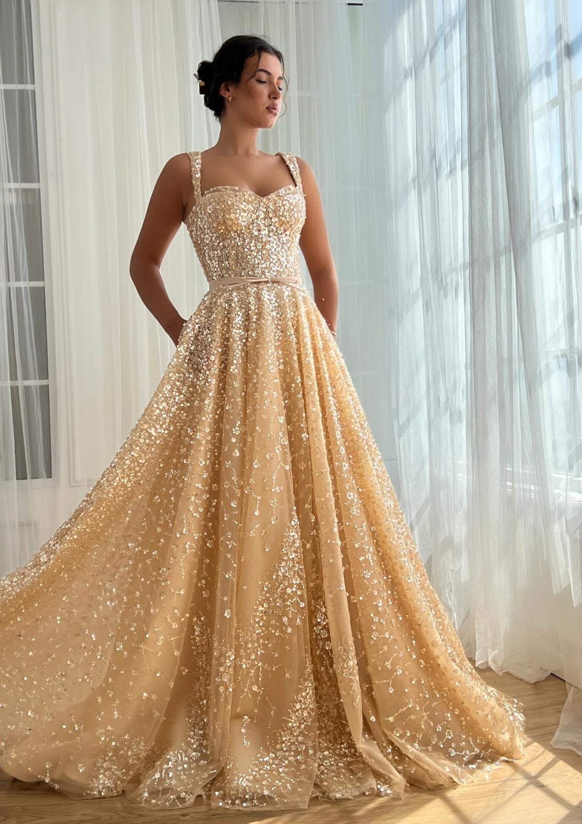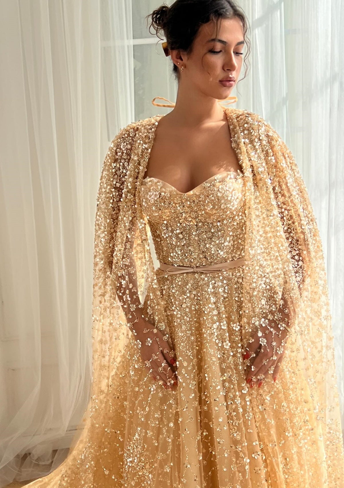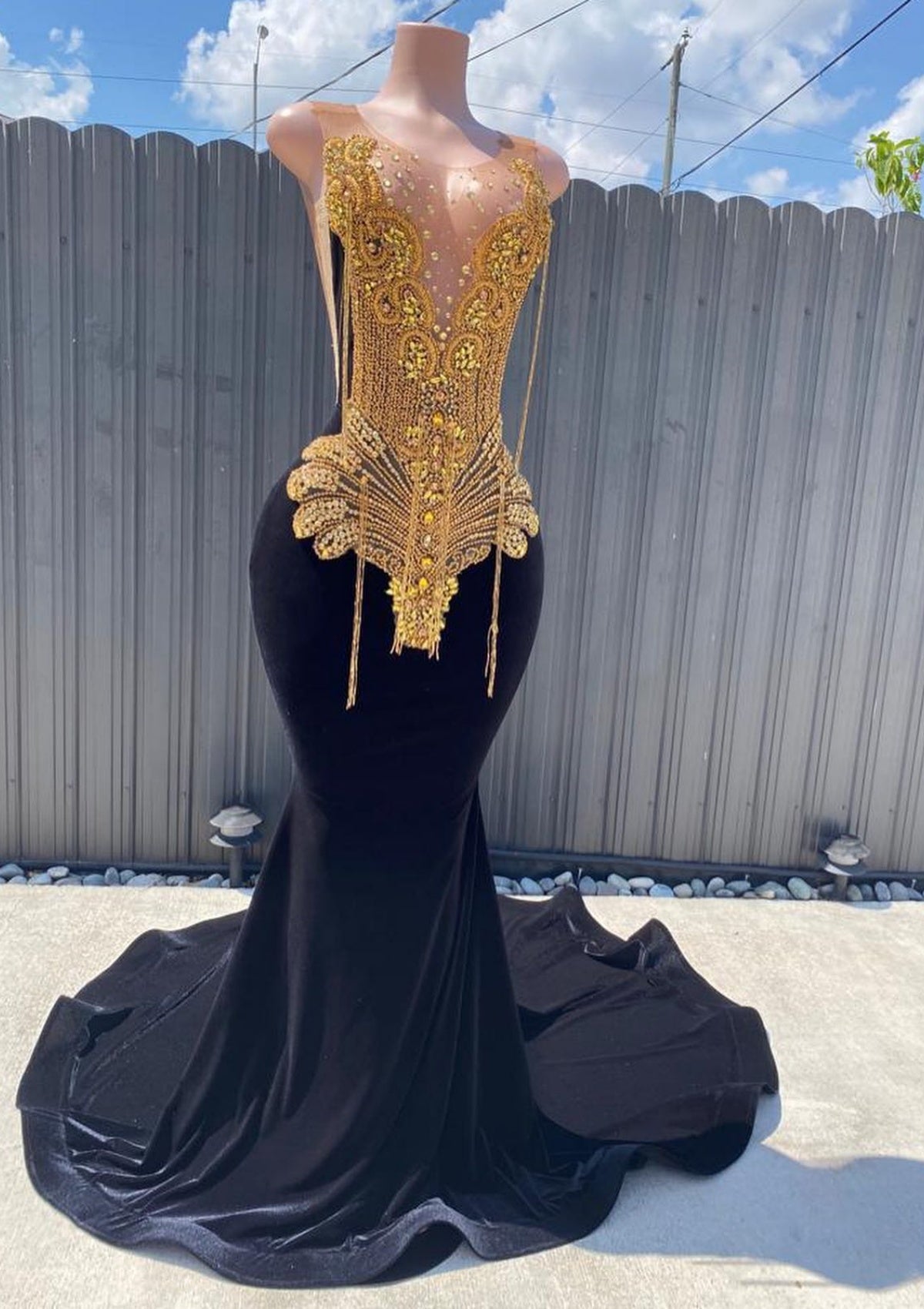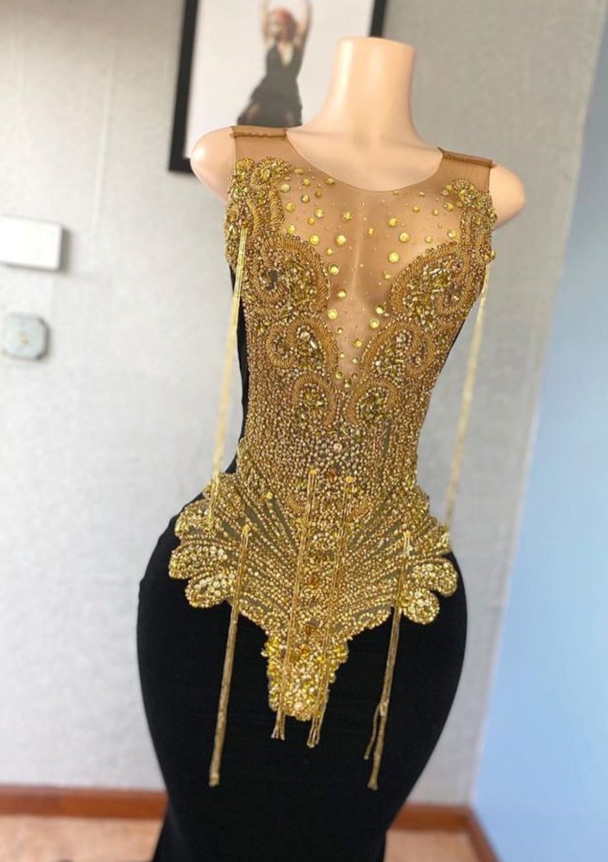 Golden Sequined Mermaid Prom Dress with Intricate Embellished