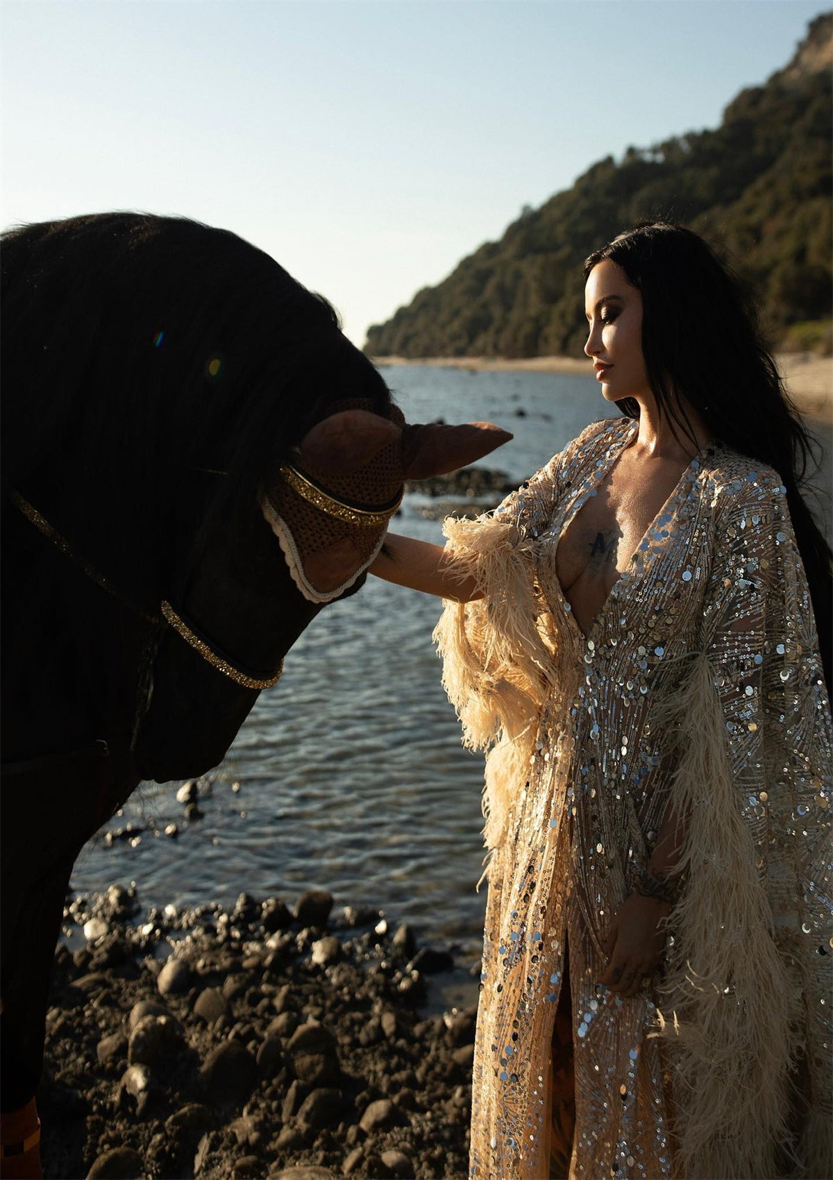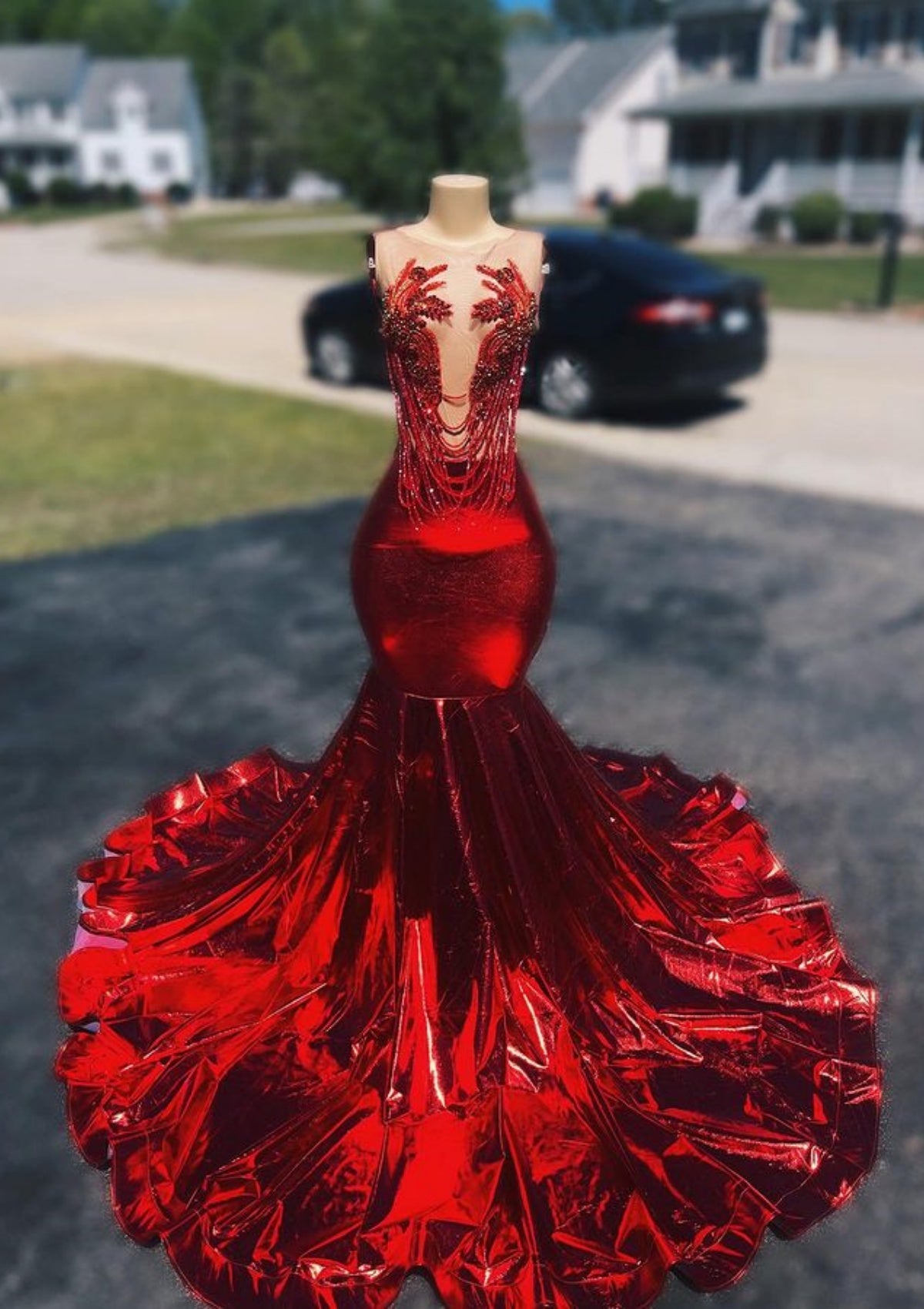 Glamorous Metallic Mermaid Prom Dress with Intricate Beading Flowing Train