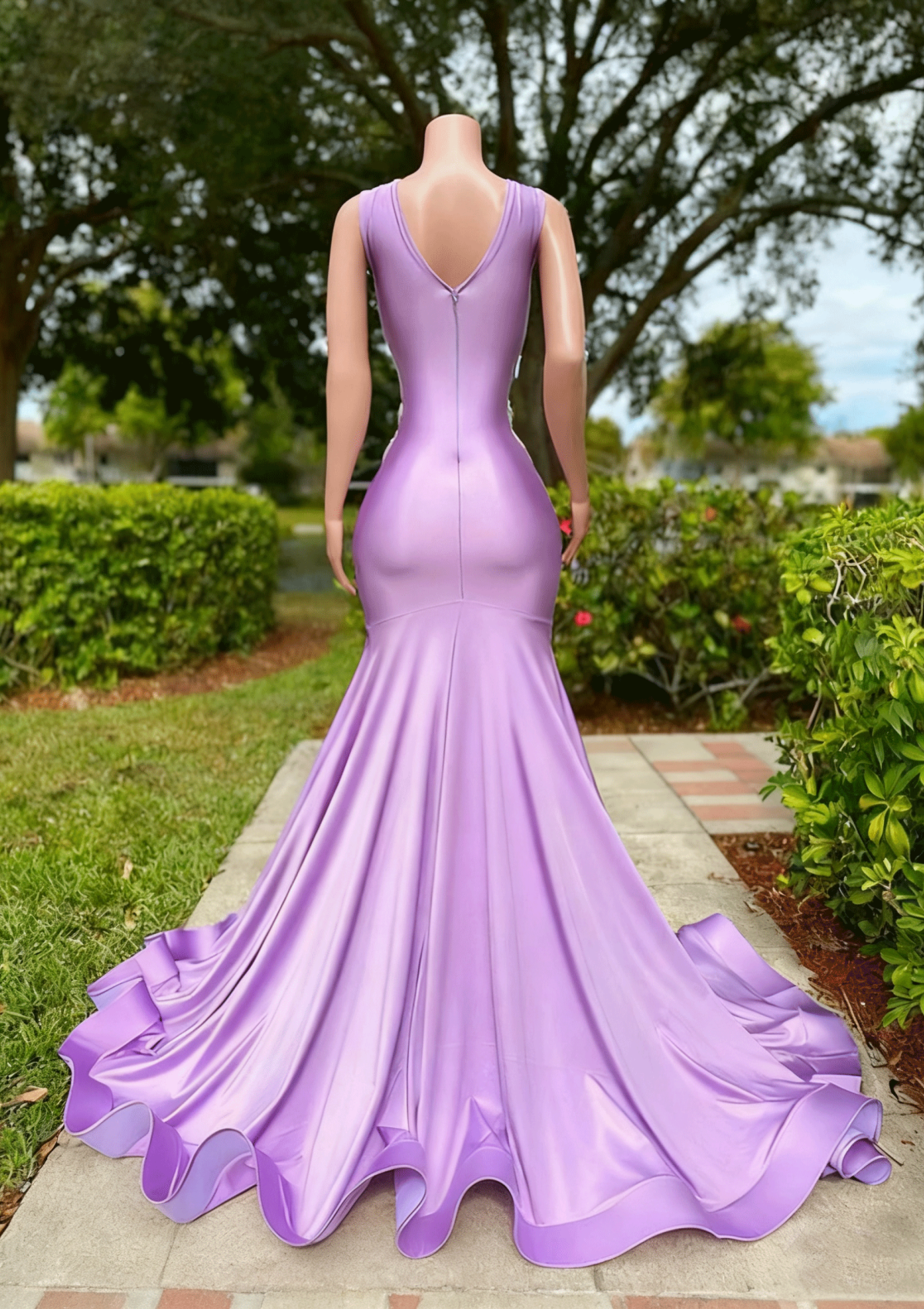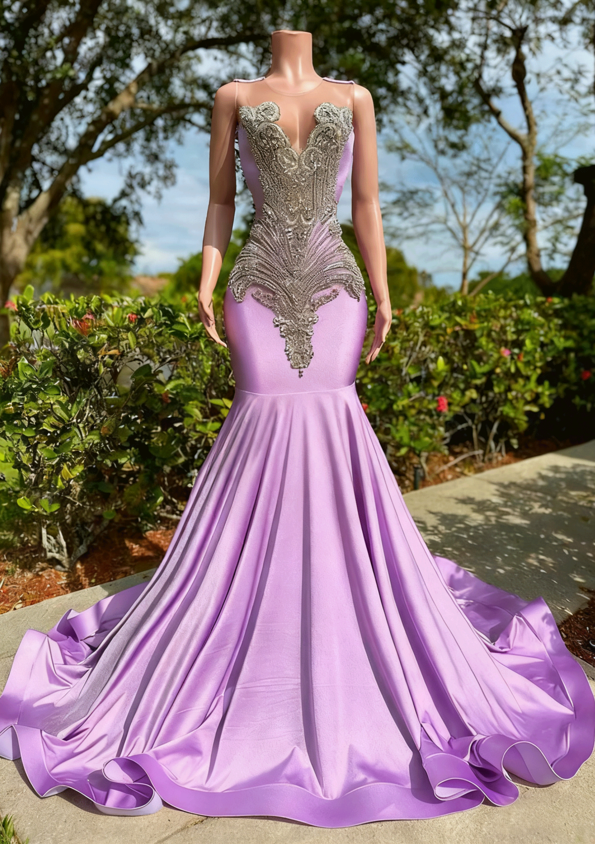 Glamorous Ornate Beaded Embellishment Lilac Mermaid Prom Dress