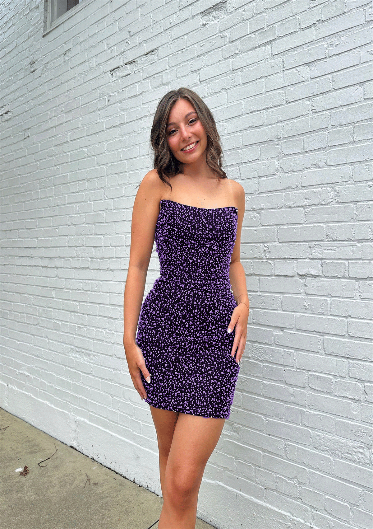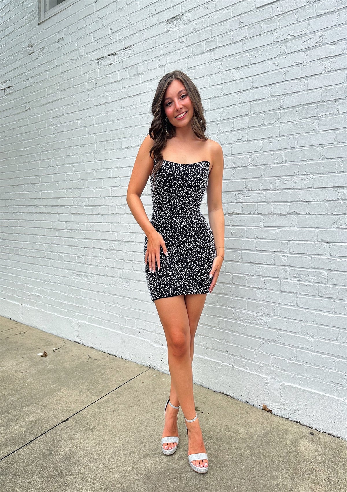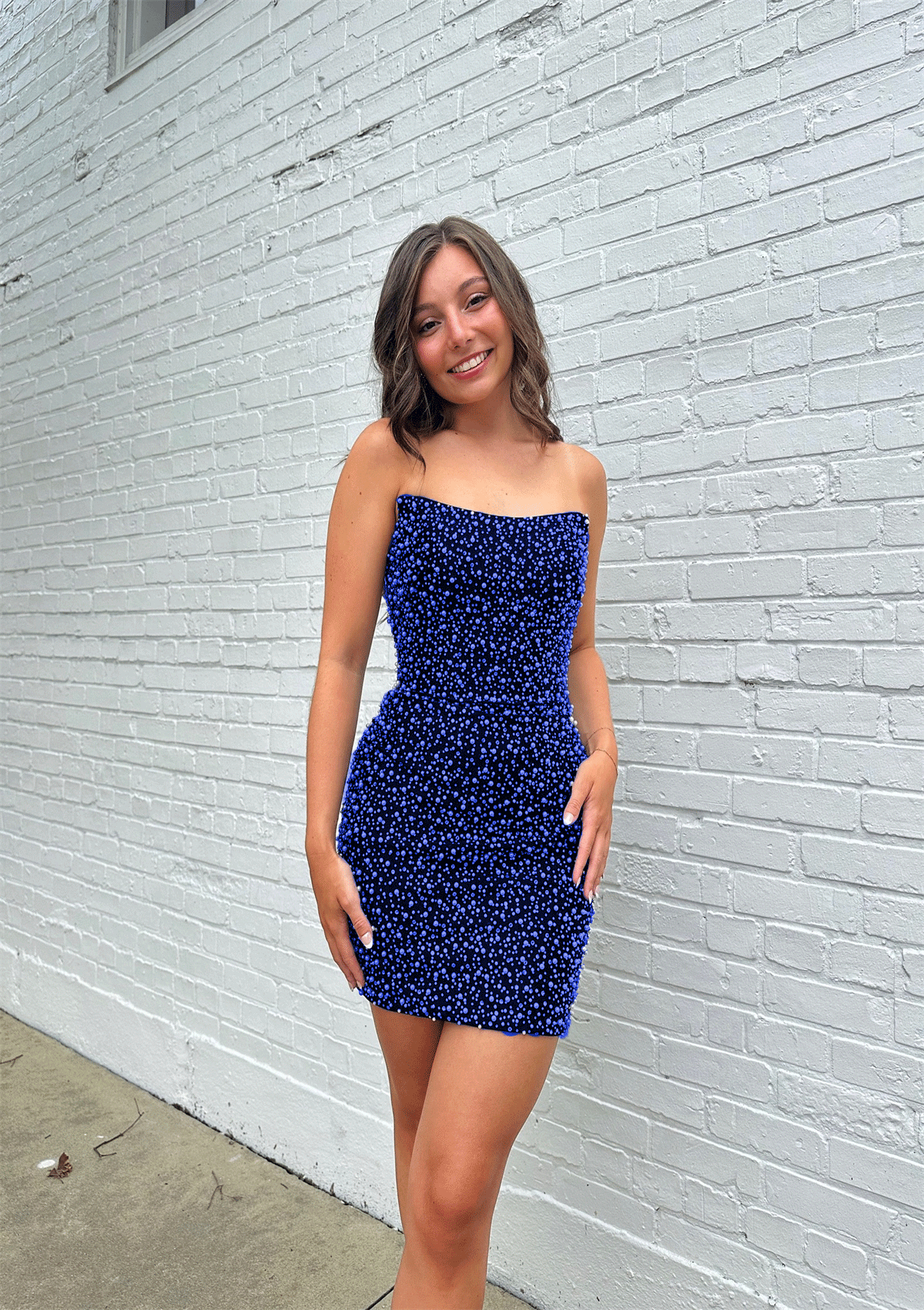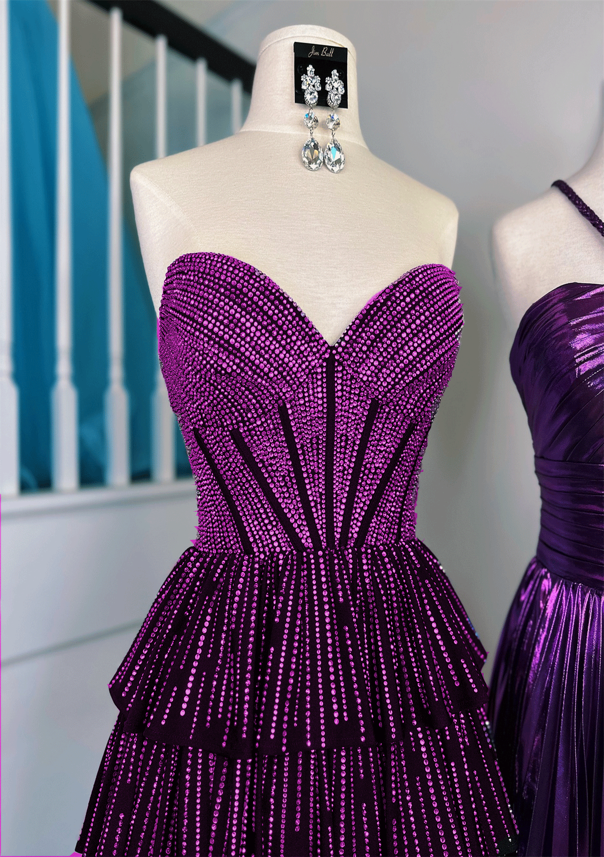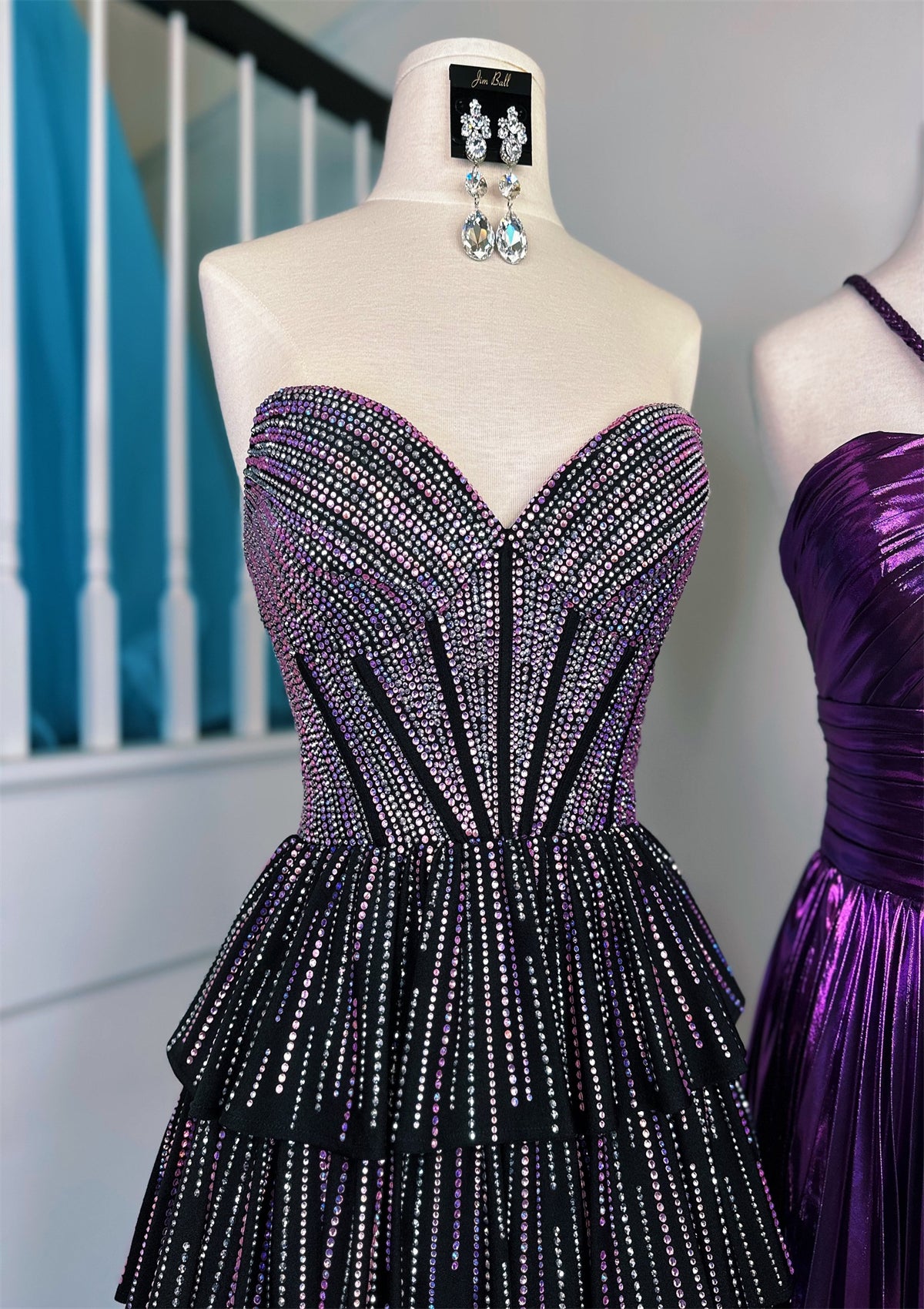 Heavy Embellished Textured Sweetheart Homecoming Dress with Rhinestone
