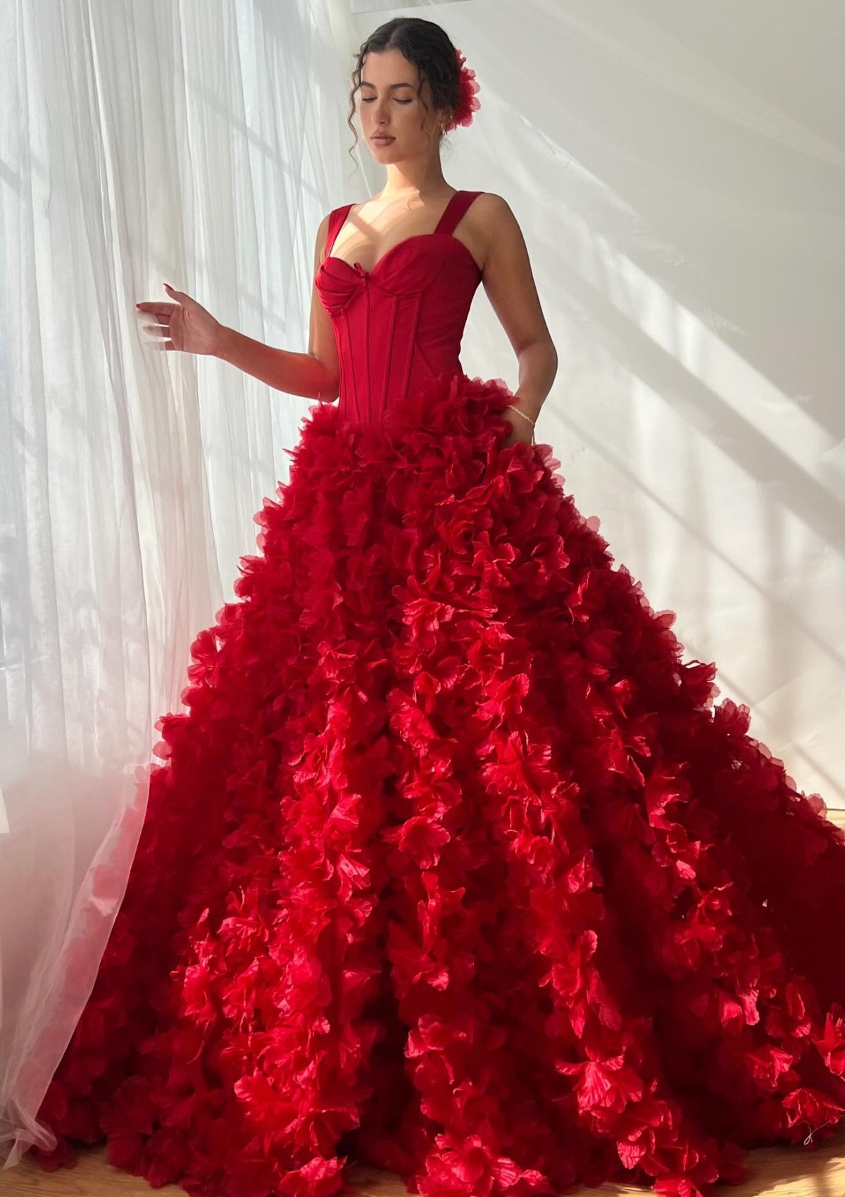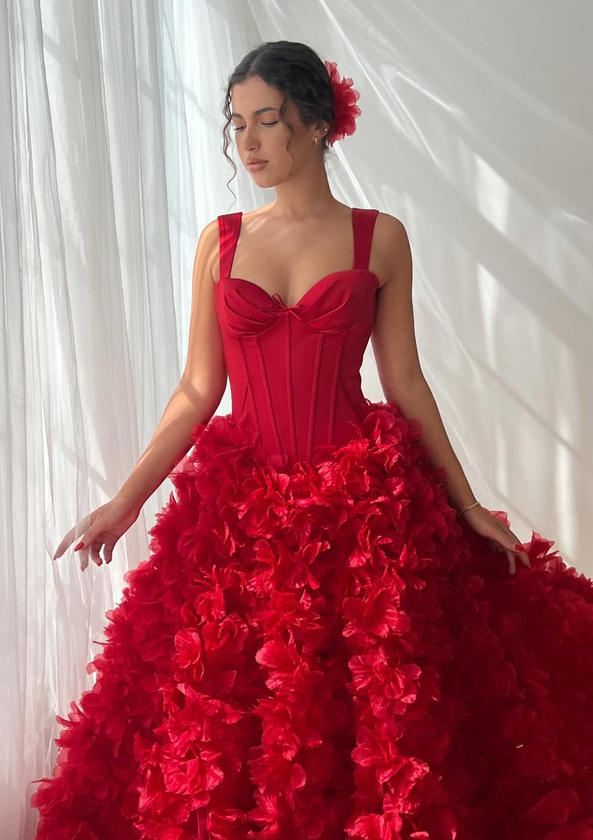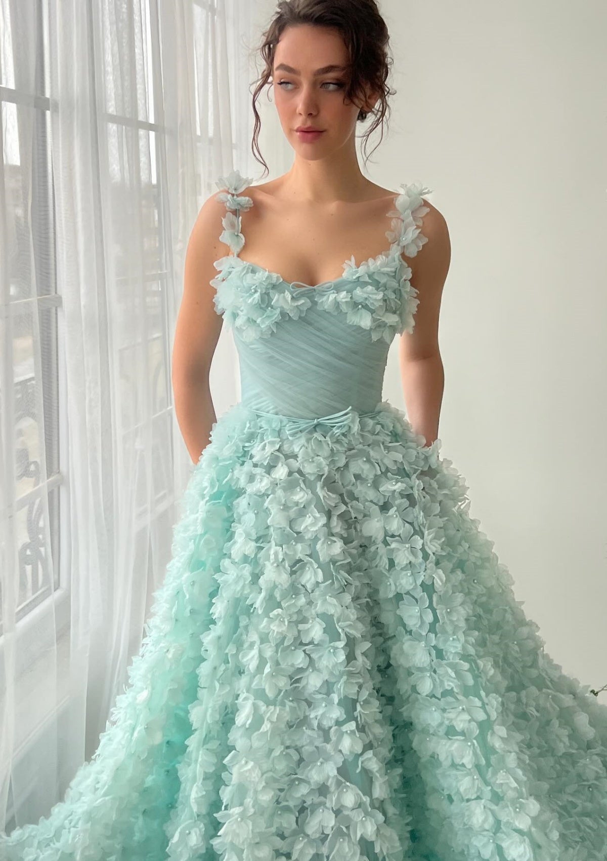 Romantic 3D Floral Embellished Spaghetti Strap Evening Dress