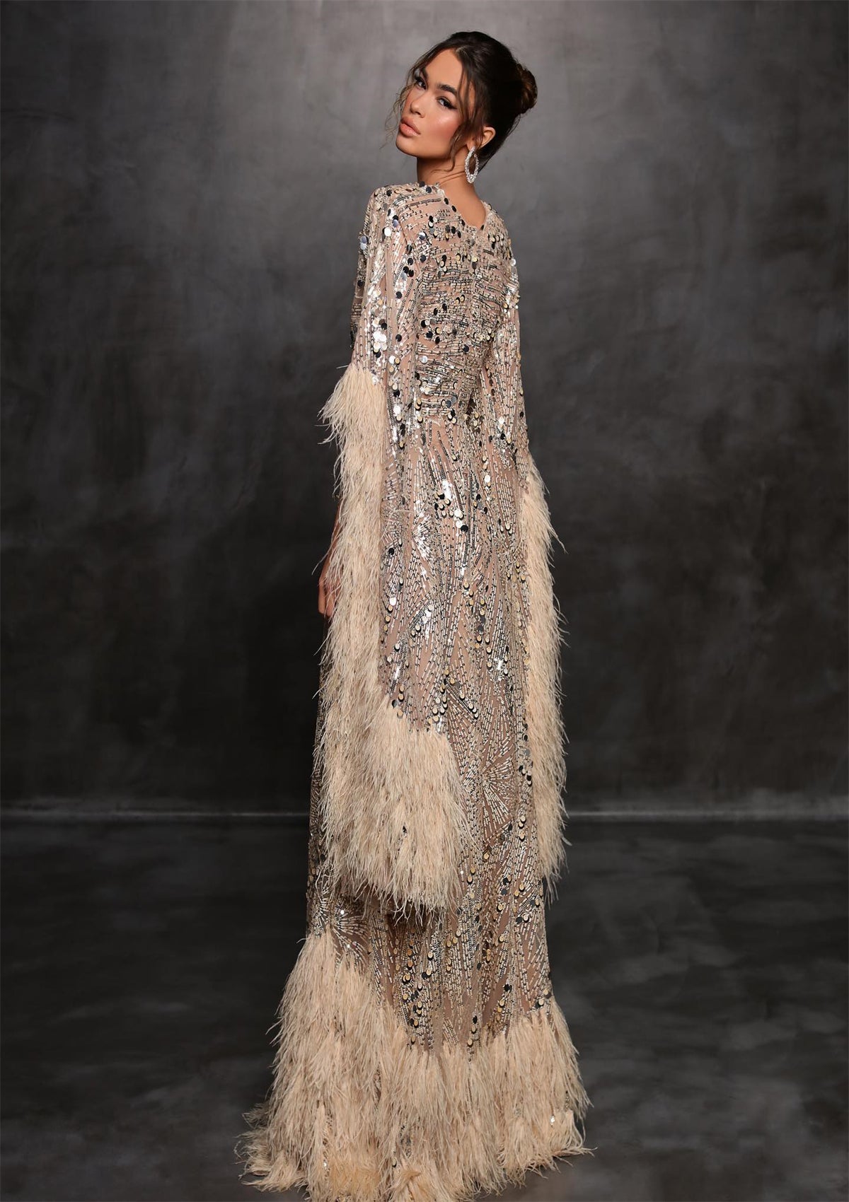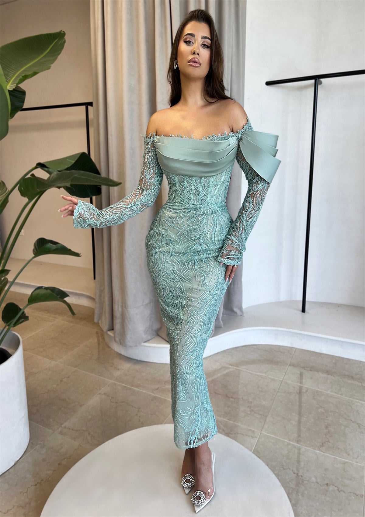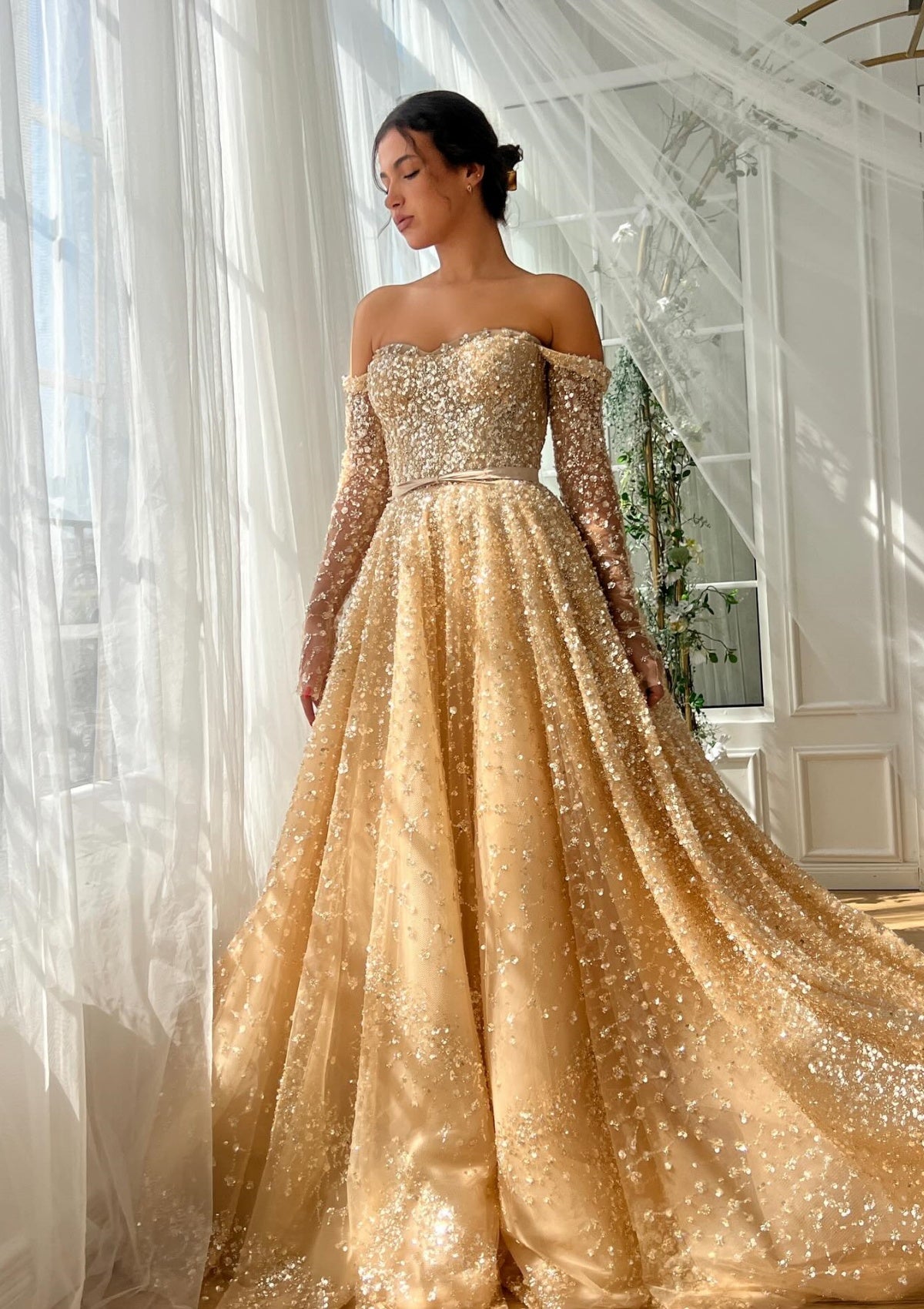 Luxury Sequin Long Sleeves Off-Shoulder Evening Gown