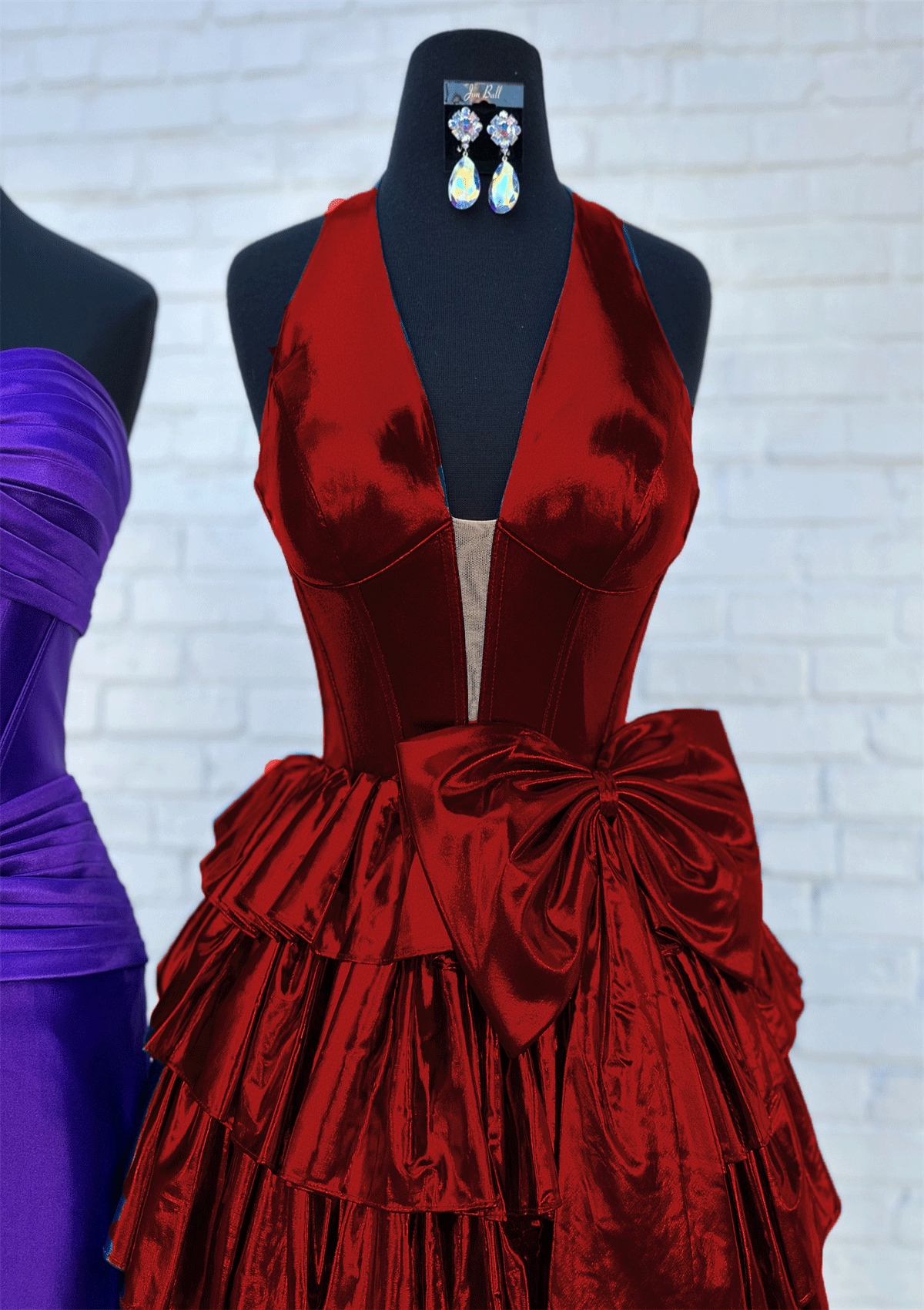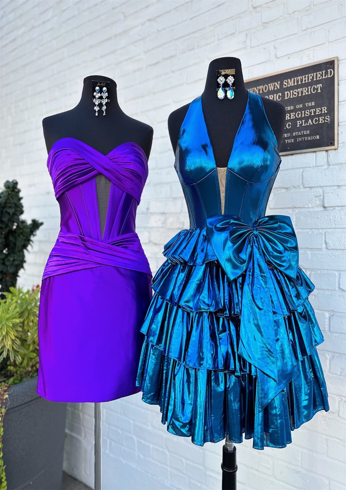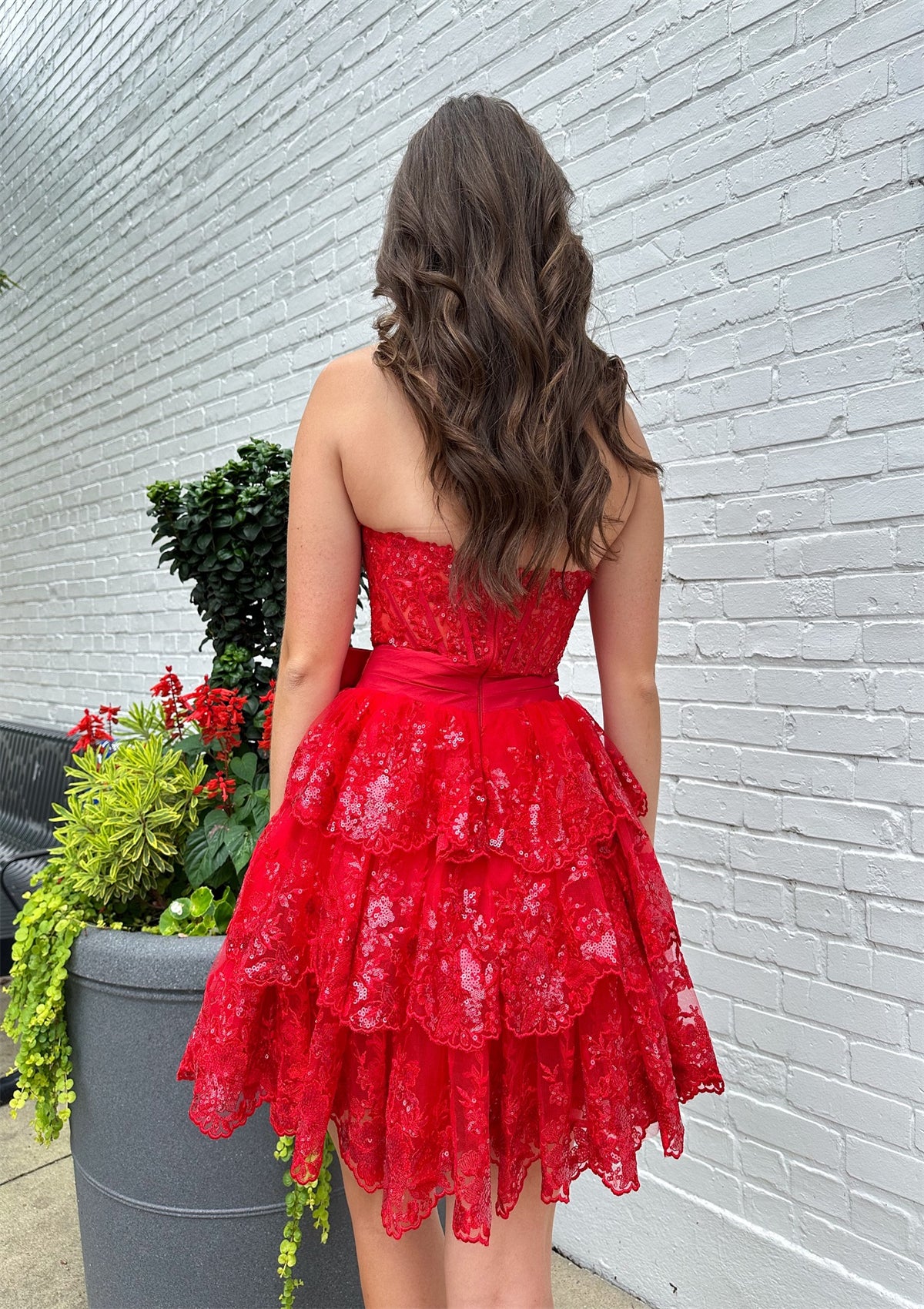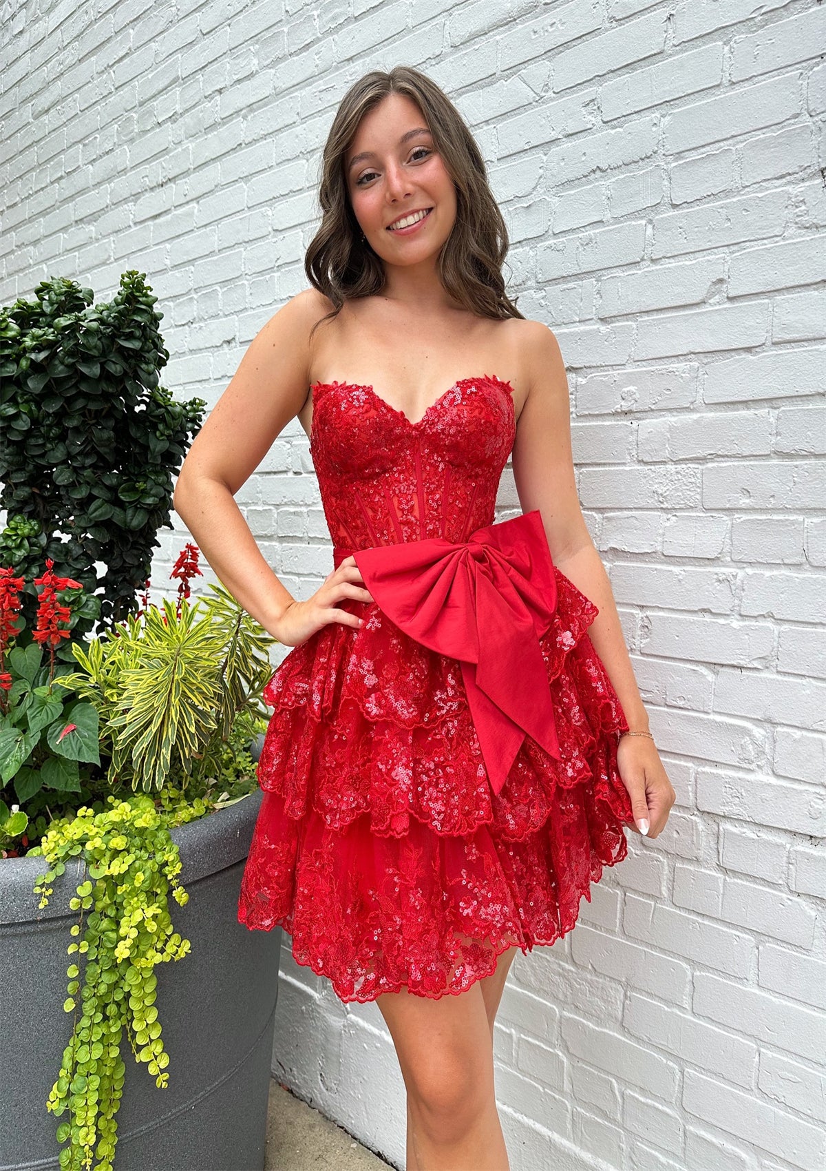 Sparkly Sweetheart Corset Tiered Short Prom Dress with Bow
