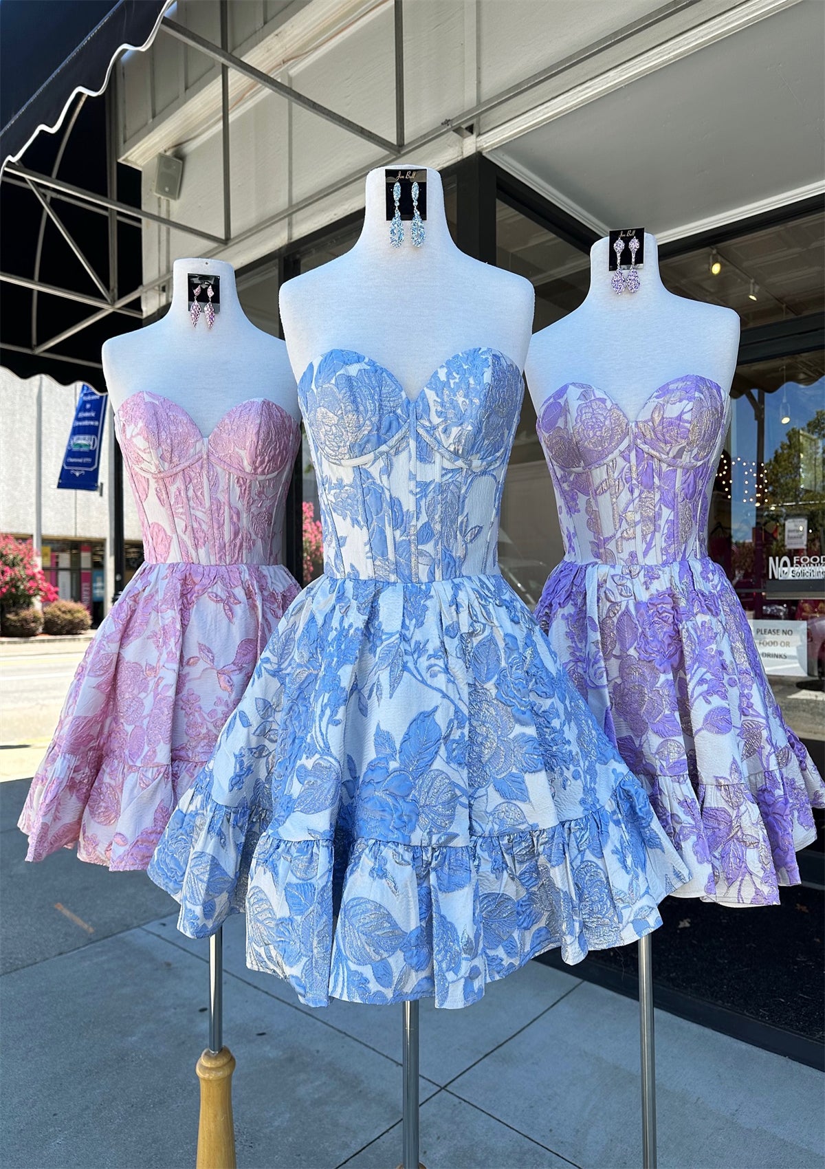 Romantic Sweetheart Pastel Floral Strapless Mini Homecoming Dress