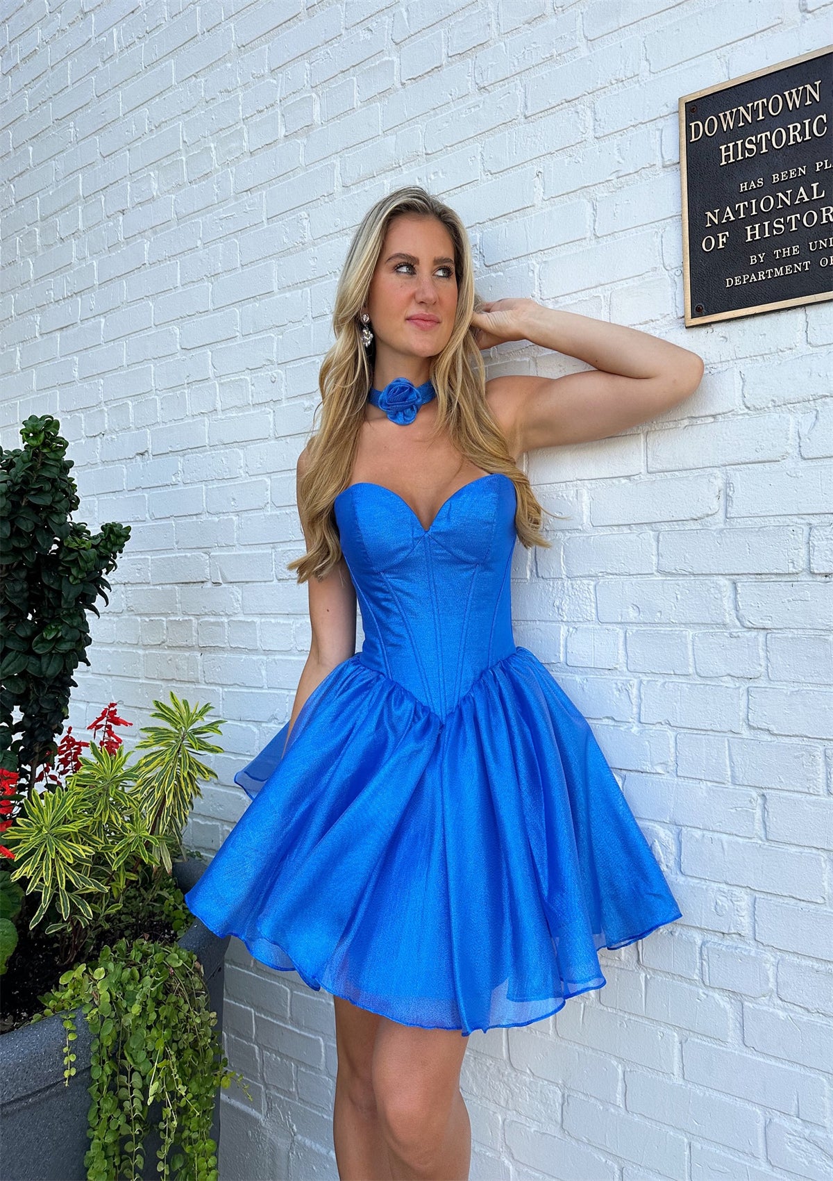 Chic Sweetheart Corset A Line Blue Homecoming Dress