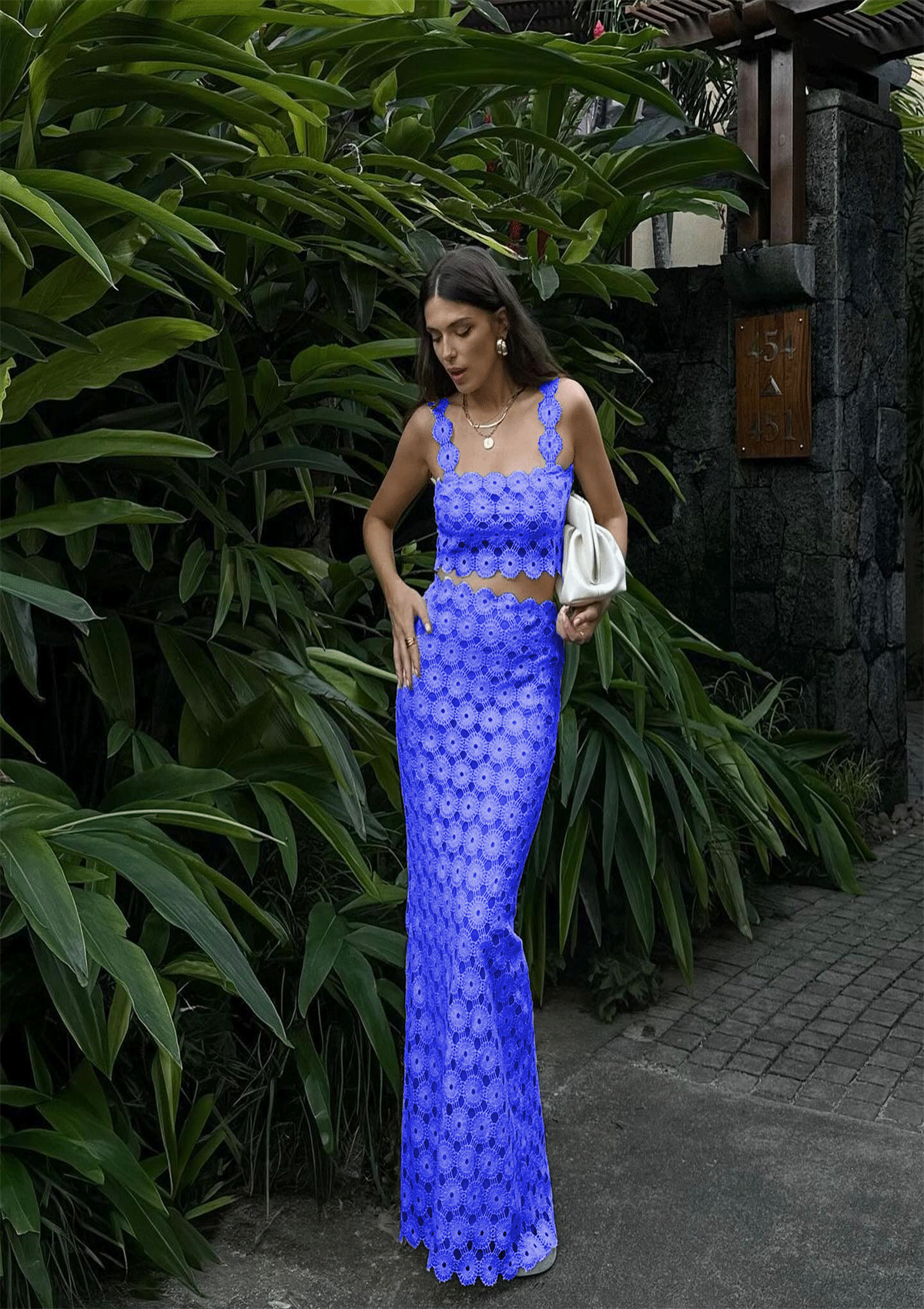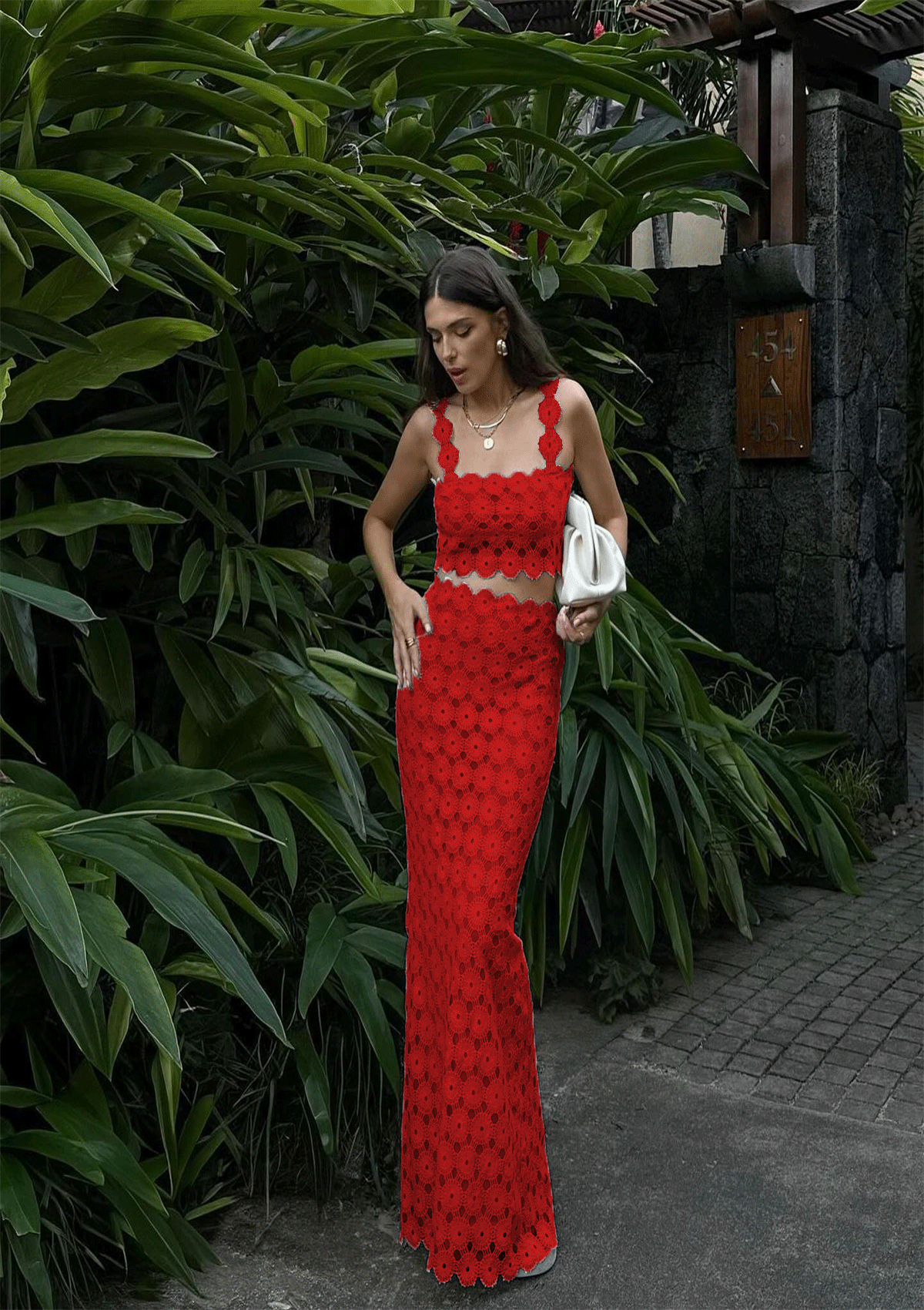 Mermaid Cutout Spaghetti Strap Red Floral Lace Sheer Evening Dress