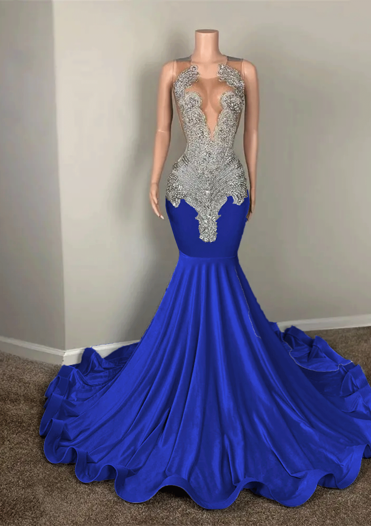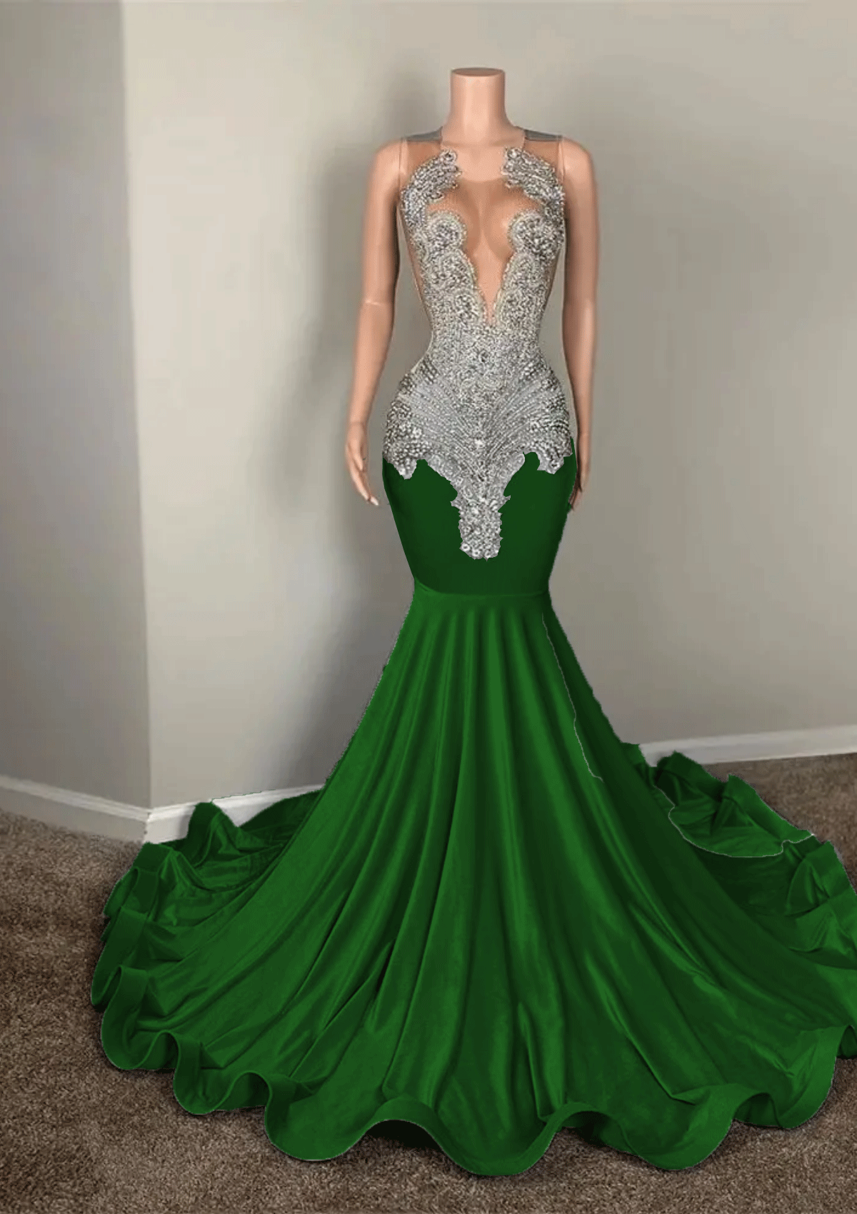 Mermaid Rhinestone Embellished Illusion Neckline Prom Dress