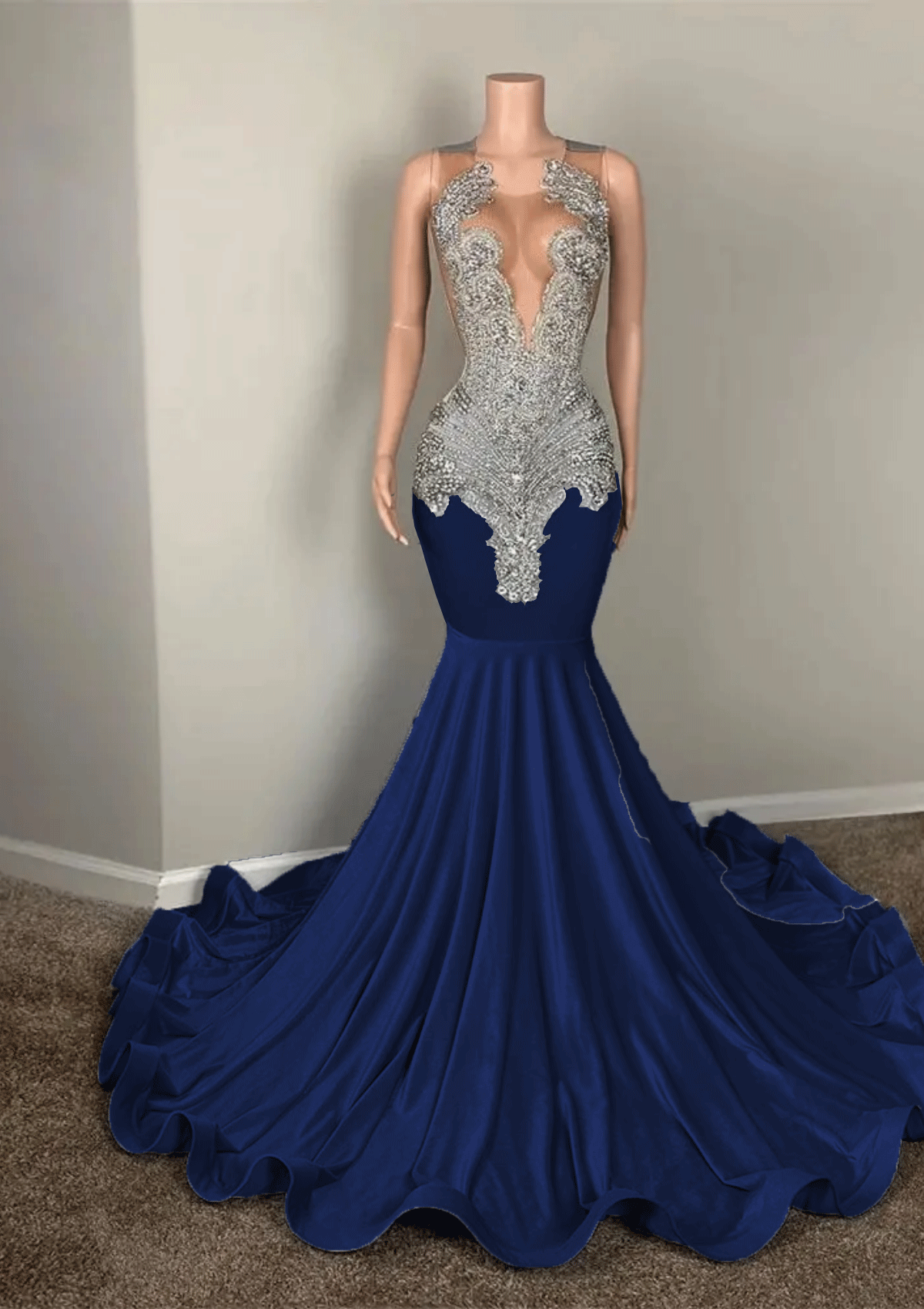 Luxury Rhinestone Appliques Elastic Prom Dress